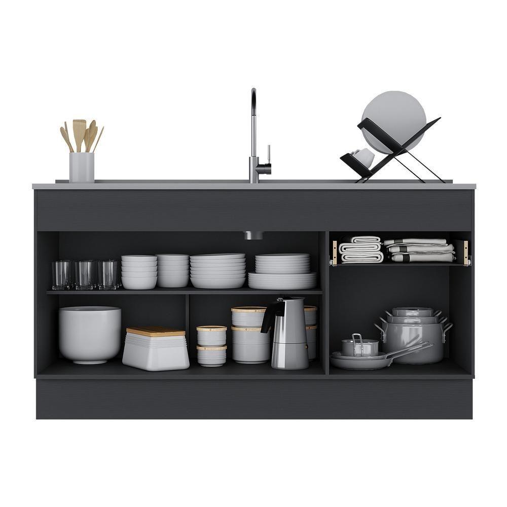 Balcão Cozinha Gabinete Pia 150cm Com Rodapé 3 Portas 1 Gaveta Veneza Multimóveis V2115 Preto/branco Preto/branco