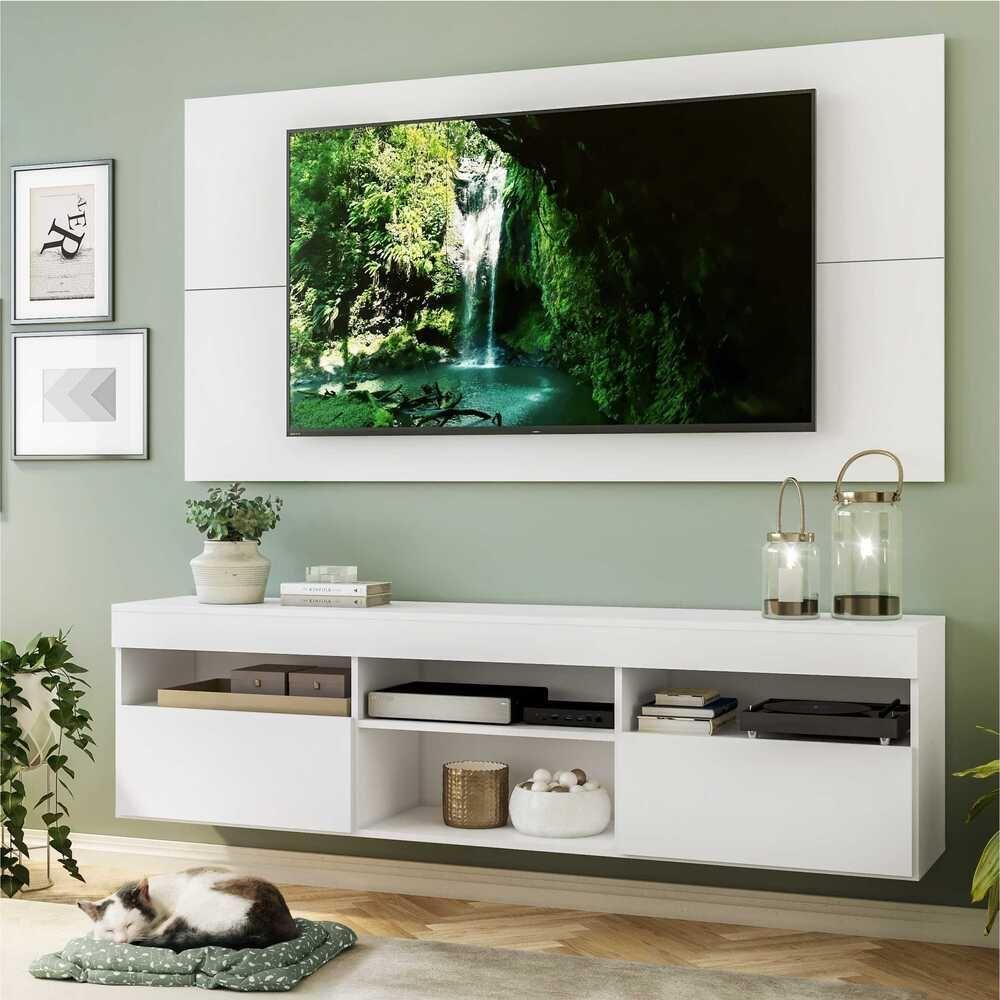 Rack Com Painel E Suporte Tv 65" Suspenso Londres Multimóveis V3346 Branco Branco