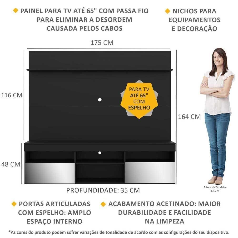 Rack Com Espelho E Painel Tv 65" Madri Multimóveis V3367 Preto Preto