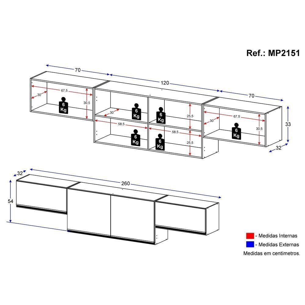 O Kit 3 Armários de Cozinha Aéreos 4 Portas Veneza Multimóveis MP2151 é a solução perfeita para otimizar o espaço da sua cozinha. Fabricado em MDP com acabamento acetinado (cerca de 20% de brilho), ele garante durabilidade e resistência. Com duas portas basculantes, que facilitam o acesso aos itens, e duas portas de giro, você terá praticidade na hora de preparar suas receitas favoritas. Os puxadores estilosos em ABS dão um toque especial ao armário. E para manter tudo organizado e ao alcance das mãos, o conjunto possui duas prateleiras internas. O kit é composto por 3 módulos separados, permitindo que você os monte da maneira que preferir!Conteúdo da Embalagem:2 (dois) Armários Aéreos 70cm1 (um) Armário Aéreo 120cmManual de MontagemKit FerragemDimensões do produto montado:Altura: 54cm | Largura: 260cm | Profundidade: 32cm*Você pode consultar as medidas detalhadas na imagem técnica do produto.*As cores do produto podem sofrer variações de tonalidade de acordo com as configurações do seu dispositivo.Imagem meramente ilustrativa. Decoração não acompanha o produto.O produto será entregue desmontado e não disponibilizamos o serviço de montagem.