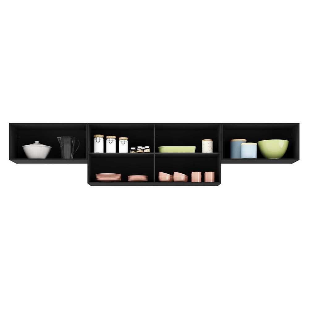 Kit 3 Armários De Cozinha Aéreos 4 Portas Veneza Multimóveis Mp2151 Preto/dourado Preto/dourado