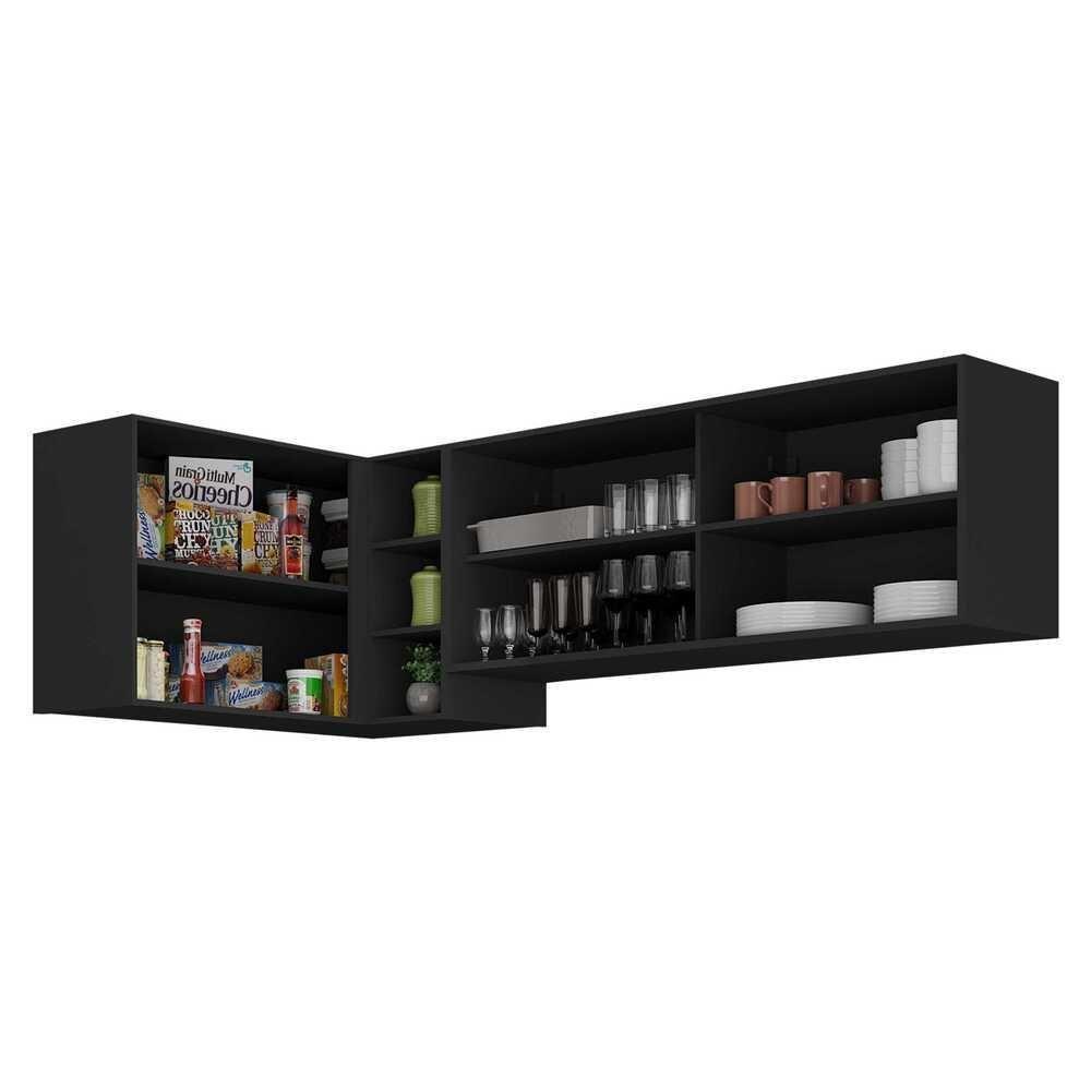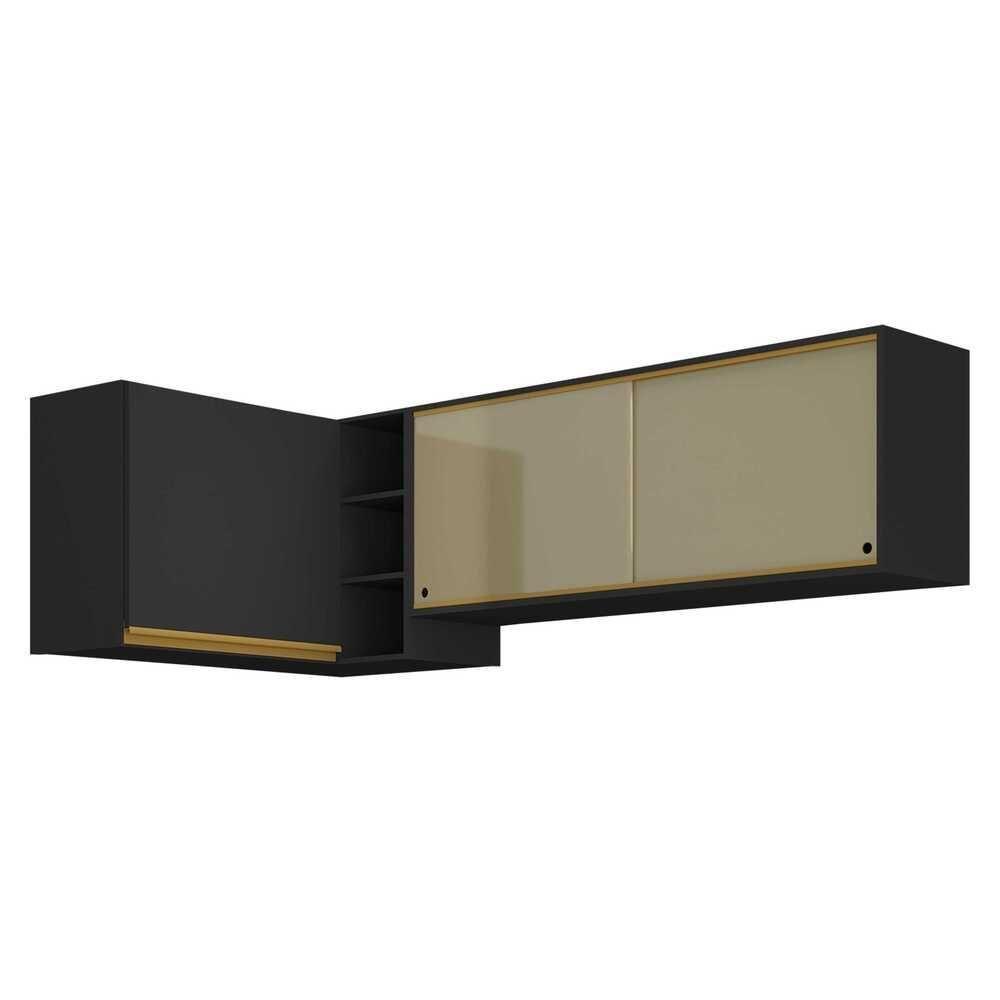 Kit Armário De Cozinha Aéreo Canto 90cm E Aéreo 120cm Veneza Multimóveis Mp2147 Preto-dourado