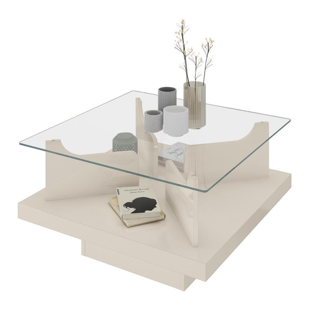 Mesa De Centro Quadrada 70cm Com Vidro Multimóveis Cr45305 Off White