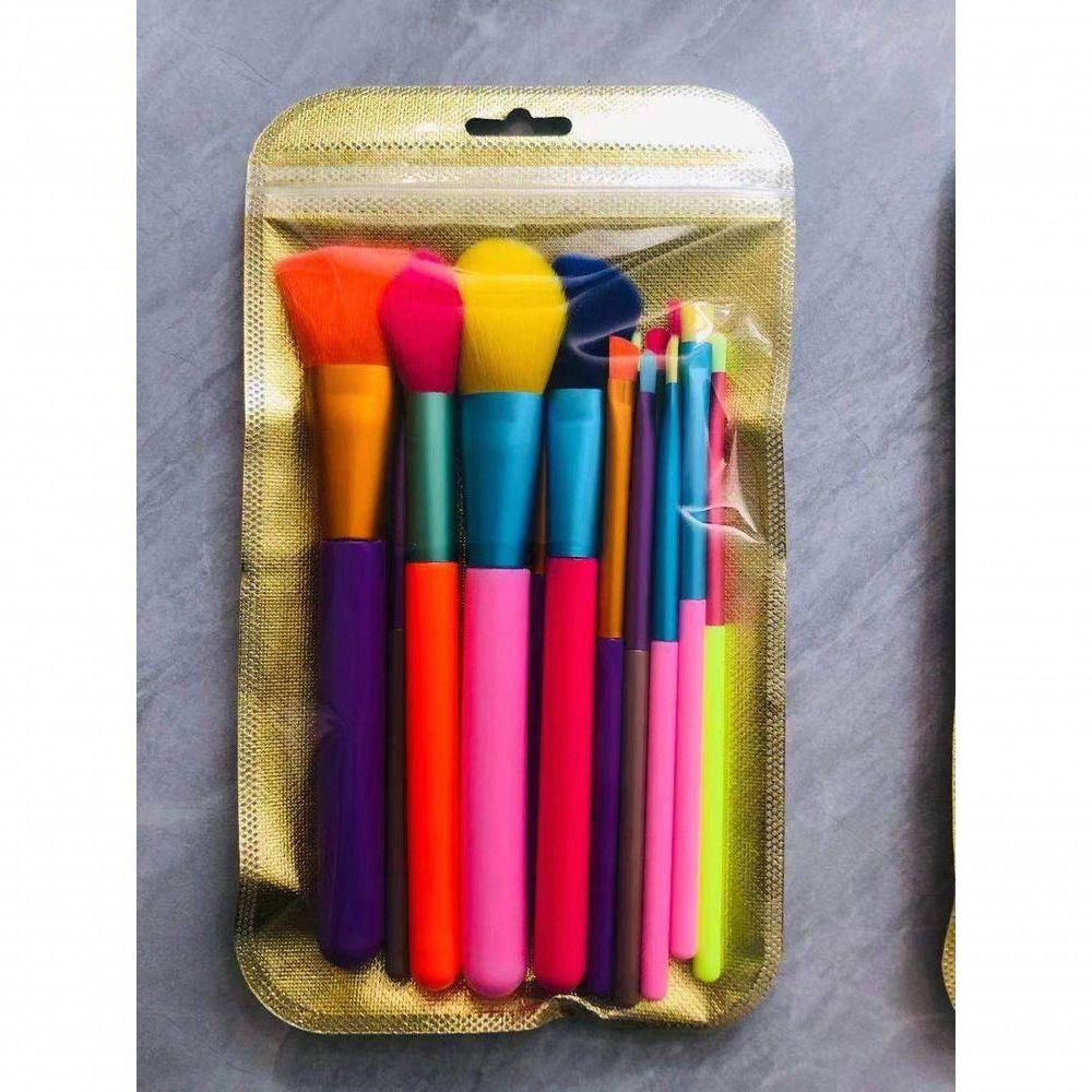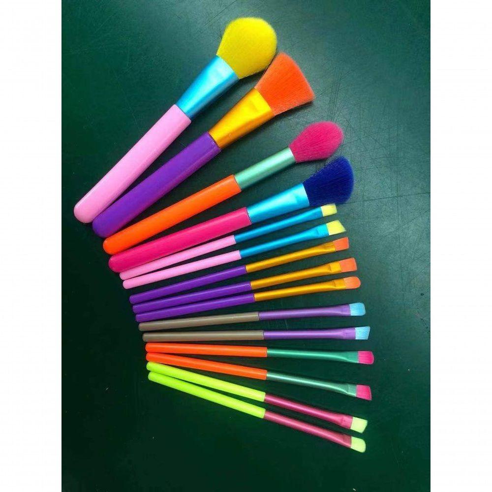 Pincel Maquiagem Kit 15pçs Neon Portatil Colorido Makeup
