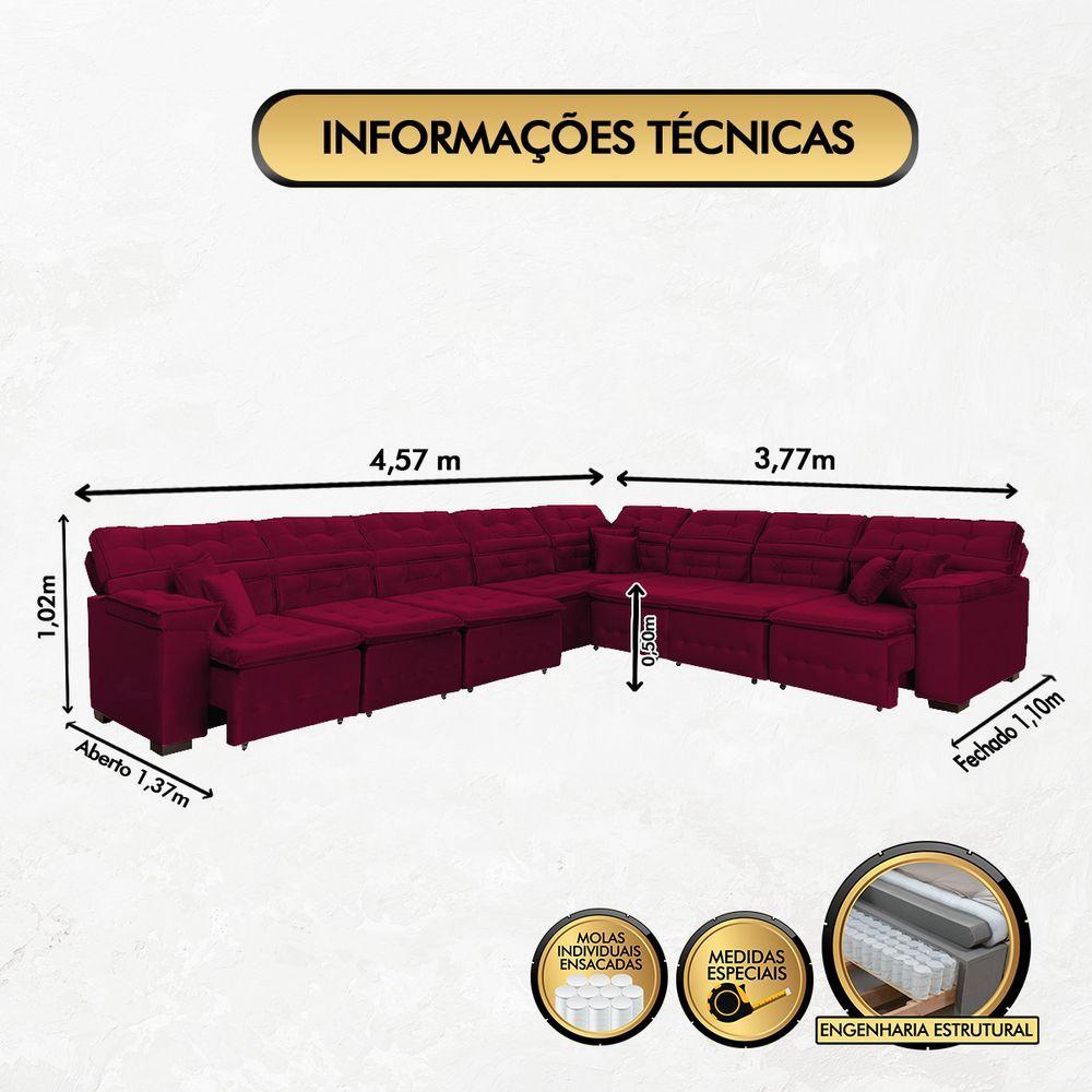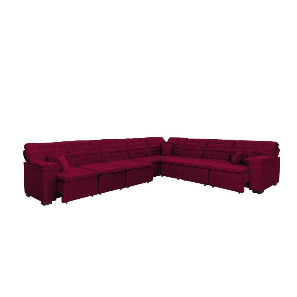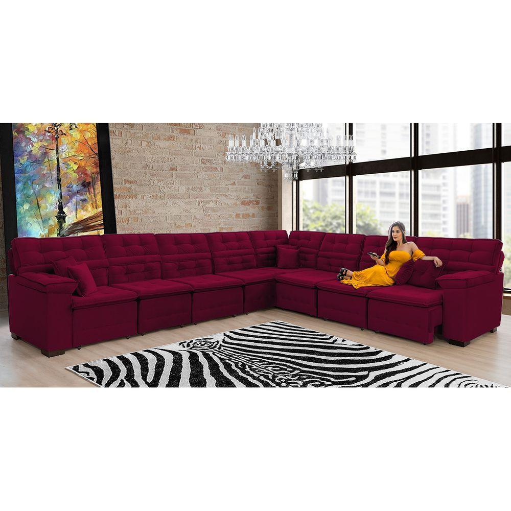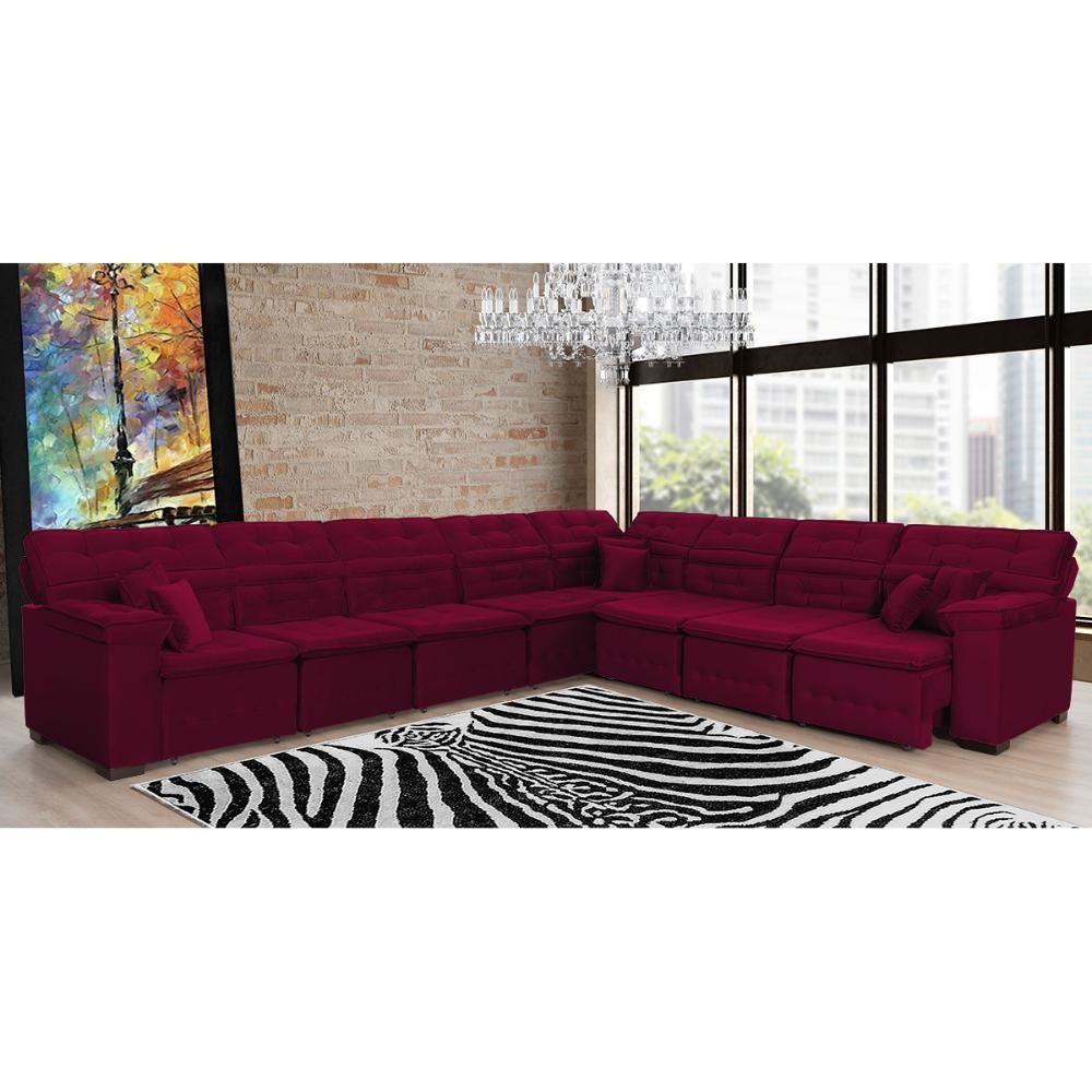 Sofá Magno 4.57x3.77m De Canto, Retrátil E Reclinável - Vinho