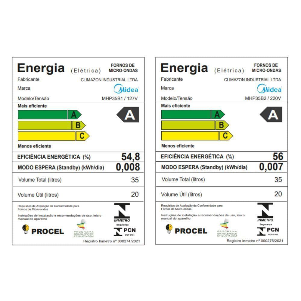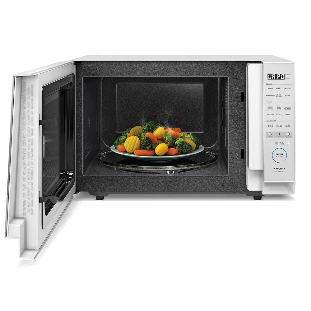Micro-ondas 35L Branco Mastercook Midea MHP35B1 110VO Micro-ondas 35L MasterCook Midea é a solução perfeita para quem busca eficiência, versatilidade e praticidade.Sua Função MasterCook oferece 6 funções que facilitam o dia a dia: desidratar, cozinhar, assar, ao vapor, derreter e fermentar.O interior com revestimento exclusivo MasterClean possui cavidade escura que evita o acúmulo de gordura e facilita a limpeza.Com design moderno, apresenta puxador embutido com acabamento discreto, unindo estilo e funcionalidade.Possui 6 receitas pré-programadas — pipoca, arroz, brigadeiro, bolo de caneca, lasanha e pudim — acionadas com apenas um toque.Além disso, oferece 10 níveis de potência, permitindo ajustar o preparo de acordo com o tipo de alimento e o resultado desejado.A tecnologia Smart Plate garante que o prato giratório retorne automaticamente as alças de xícaras e canecas à posição inicial, facilitando a retirada com segurança.Conta com função descongelar por tempo para carne, frango e feijão, função manter aquecido (preserva a temperatura por até 5 minutos em potência baixa) e função limpa fácil, que derrete a gordura interna para uma higienização simples.Ideal para famílias ou quem busca mais espaço interno, o Micro-ondas 35L MasterCook Midea une tecnologia, praticidade e design para transformar sua rotina na cozinha.Atenção: Esta loja não fatura para CNPJ.Características PrincipaisOrigem: NacionalTipo: BancadaCapacidade: 35 LCor: BrancoCor Interna: Cinza EscuroMaterial Interno: MetalMaterial Externo: Metal, Plástico e VidroAbertura: LateralPuxador: Alça embutidaDisplay Digital: SimCor do Display: BrancoProduto Conectado: NãoInteligência Artificial: NãoFunções e RecursosFunção MasterCook: Desidratar, cozinhar, assar, ao vapor, derreter e fermentarFunção BabyCare: Ideal para esterilizar acessóriosFunção Limpa Fácil: Derrete a gordura acumulada e facilita a higienizaçãoFunção Manter Aquecido: Mantém a temperatura por até 5 minutosFunção Relógio, Silêncio e PotênciaPrato Giratório Inteligente (Smart Plate): Retorna automaticamente à posição inicialSistema Toque Rápido (+30s): Aquecimento em um toqueMenu Descongelar: Carne, feijão e frangoReceitas Pré-programadas: Arroz, bolo de caneca, brigadeiro, lasanha, pipoca e pudimDesodorizador: SimControle de Temperatura: SimNíveis de Potência: 10Grill: NãoTemporizador Máximo: 99 minutos / 99 segundosEficiência e EnergiaFrequência: 60 HzTipo de Tomada: 20 AFonte de Energia: ElétricoPotência Nominal (127V): 1450 WPotência Nominal (220V): 1450 WClasse de Eficiência Energética: A (INMETRO)Dimensões e PesoProduto:Altura: 32,5 cmLargura: 52 cmProfundidade: 41,6 cmPeso: 15,4 kgProduto Embalado:Altura: 56,6 cmLargura: 46,3 cmProfundidade: 35,8 cmPeso: 15,9 kgItens Inclusos1 Micro-ondas1 Manual de Instruções1 Guia Rápido1 Prato de VidroGarantia e SuporteGarantia do Produto: 12 mesesInformações TécnicasCódigo do Produto: MHP35B1.MHP35B2Marca: MideaModelo: MHP35P1.MHP35P2