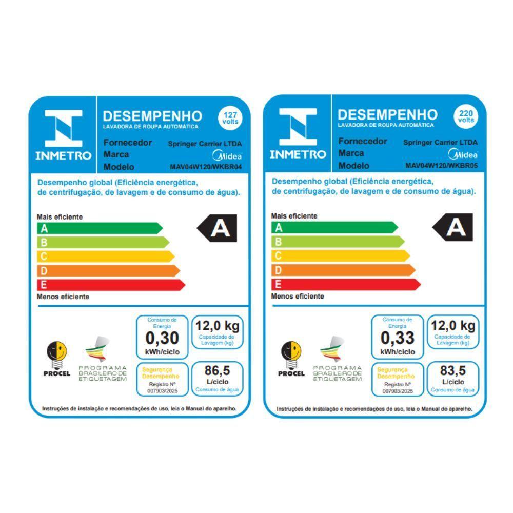 Máquina De Lavar 12kg Branca Wave Impeller Midea MAV04W120/WKBR05 220V