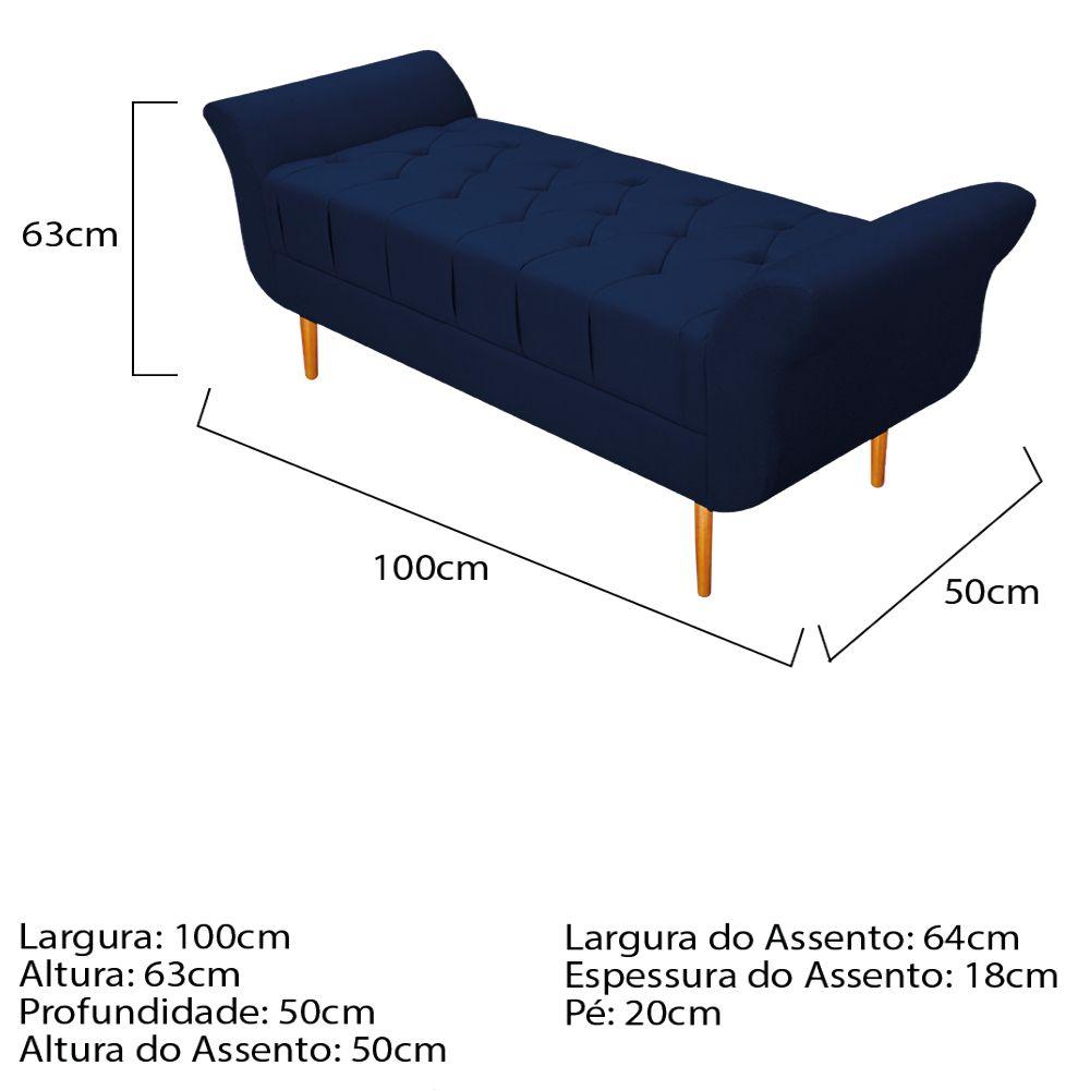 Recamier Ari 100 Cm Solteiro Suede Azul Marinho