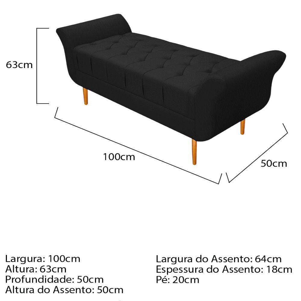 Recamier Ari 100 Cm Solteiro Suede Preto