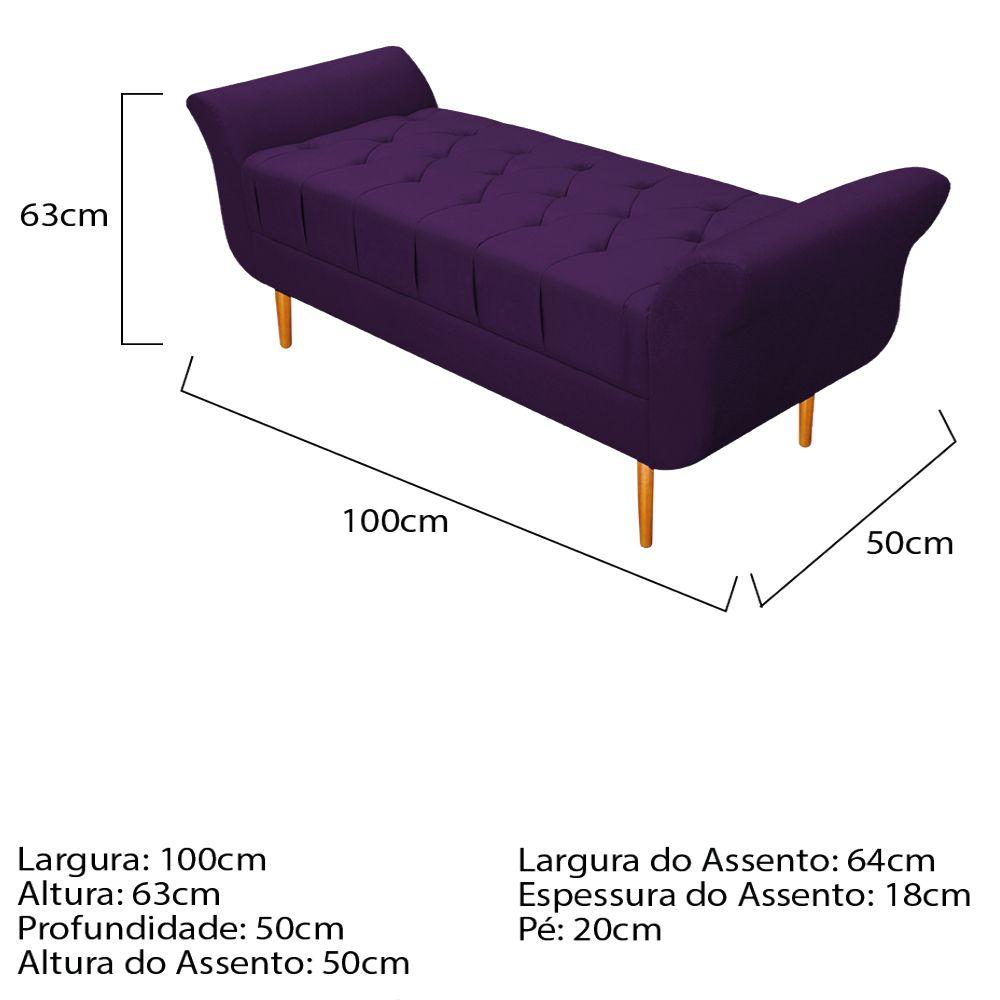 Recamier Estofado Ari 100 Cm Solteiro Suede Roxo - Adj DecorSe Você Está Procurando Conforto e Elegância, o Recamier Estofado Ari é Perfeito Para Você, Clique e Confira!Gostaria de um móvel que trouxesse mais elegância e sofisticação para o seu lar? O Recamier Ari é sua melhor opção! Com característica moderna e com acabamento de qualidade, este produto atenderá suas expectativas! O Recamier Ari é projetado para atender um requisito intimista e aconchegante, transmitindo a ideia de um contexto refinado e singular. Além disso, seu design foi desenvolvido carinhosamente, pensando em levar até você um conforto inigualável. Seus detalhes em botonê garantem um toque final de bom gosto e luxuosidade.Especificações Técnicas do Recamier Ari:- Altura: 63 Cm;- Largura: 100 Cm;- Profundidade: 50 Cm;- Altura do Assento: 50 Cm;- Largura do Assento: 64 Cm;- Espessura do Assento: 18 Cm;- Tamanho do Pés: 20 Cm;- Peso: 20 Kg.Diferenciais do Recamier Ari:- Material da Estrutura: Fabricado com Madeira Pinus e Eucalipto Reflorestada, e alguns detalhes em MDF;- Detalhes do Tecido: Possui detalhes em botonê, onde os botões são revestidos no mesmo tecido do produto e finalizados com excelente acabamento;- Detalhes dos Pés: Acompanha kit de pés (4 pés), com alta resistência;- Volumes: Nessa compra você receberá um único produto.Recomendações de limpeza:- Limpar com flanela limpa e seca. Não molhar o móvel e não expor em lugar úmido ou próximo de fontes de calor. Não usar produtos abrasivos.Observações Importantes:- As imagens ambientadas são meramente ilustrativas e podem apresentar itens que não compõe o produto;- Objetos decorativos que aparecem na foto não acompanham o produto;- As cores do produto podem variar de acordo com o monitor, a iluminação do ambiente, ou sua percepção visual;- O Recamier Ari chegará montado para você, bastando rosquear os pés;- Confira as dimensões antes da compra e certifique-se de que o produto passará por elevadores, portas e corredores, já que nossa entrega não inclui a subida de lances de escada, ou o lançamento de produtos;- Ao receber seus produtos, verifique no ato do recebimento qualquer dano na embalagem. Caso tenha alguma avaria, favor não assinar o comprovante de recebimento (A transportadora tem obrigação de esperar a conferência);- Produto para uso residencial em ambiente interno, não devendo ficar exposto diretamente ao sol, calor e umidades excessivas.Marca: Adj DecorGarantia: 3 meses