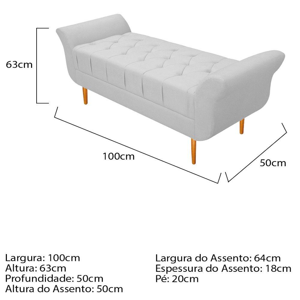 Recamier Estofado Ari 100 Cm Solteiro Corano Branco - Adj DecorSe Você Está Procurando Conforto e Elegância, o Recamier Ari é Perfeito Para Você, Clique e Confira!Gostaria de um móvel que trouxesse mais elegância e sofisticação para o seu lar? O Recamier Ari é sua melhor opção! Com característica moderna e com acabamento de qualidade, este produto atenderá suas expectativas! O Recamier Ari é projetado para atender um requisito intimista e aconchegante, transmitindo a ideia de um contexto refinado e singular. Além disso, seu design foi desenvolvido carinhosamente, pensando em levar até você um conforto inigualável. Seus detalhes em botonê garantem um toque final de bom gosto e luxuosidade.Especificações Técnicas do Recamier Ari:- Altura: 63 Cm;- Largura: 100 Cm;- Profundidade: 50 Cm;- Altura do Assento: 50 Cm;- Largura do Assento: 64 Cm;- Espessura do Assento: 18 Cm;- Tamanho do Pés: 20 Cm;- Peso: 20 Kg.Diferenciais do Recamier Ari:- Material da Estrutura: Fabricado com Madeira Pinus e Eucalipto Reflorestada, e alguns detalhes em MDF;- Detalhes do Tecido: Possui detalhes em botonê, onde os botões são revestidos no mesmo tecido do produto e finalizados com excelente acabamento;- Detalhes dos Pés: Acompanha kit de pés (4 pés), com alta resistência;- Volumes: Nessa compra você receberá um único produto.Recomendações de limpeza:- Limpar com flanela limpa e seca. Não molhar o móvel e não expor em lugar úmido ou próximo de fontes de calor. Não usar produtos abrasivos.Observações Importantes:- As imagens ambientadas são meramente ilustrativas e podem apresentar itens que não compõe o produto;- Objetos decorativos que aparecem na foto não acompanham o produto;- As cores do produto podem variar de acordo com o monitor, a iluminação do ambiente, ou sua percepção visual;- O Recamier Ari chegará montado para você, bastando rosquear os pés;- Confira as dimensões antes da compra e certifique-se de que o produto passará por elevadores, portas e corredores, já que nossa não inclui a subida de lances de escada, ou o de produtos;- Ao receber seus produtos, verifique no ato do qualquer dano na embalagem. Caso tenha alguma , favor não assinar o de (A transportadora tem obrigação de esperar a conferência);- Produto para uso residencial em ambiente interno, não devendo ficar exposto diretamente ao sol, calor e umidades excessivas.Marca: Adj DecorGarantia: 3 meses