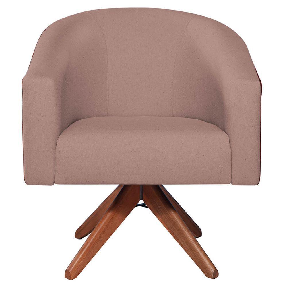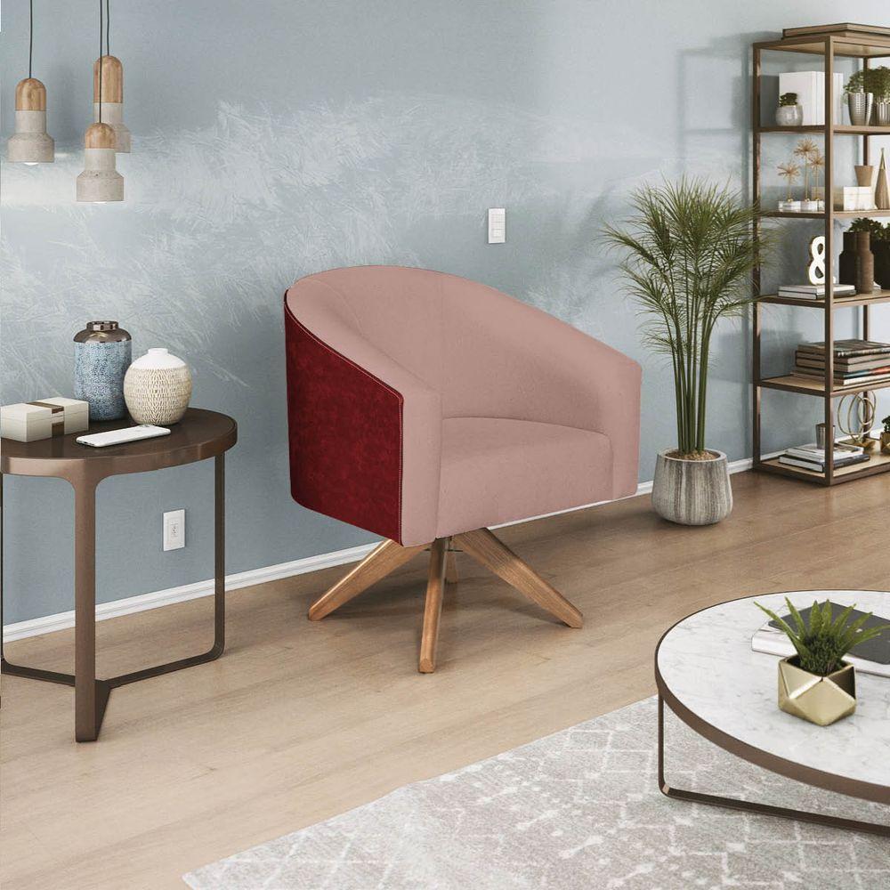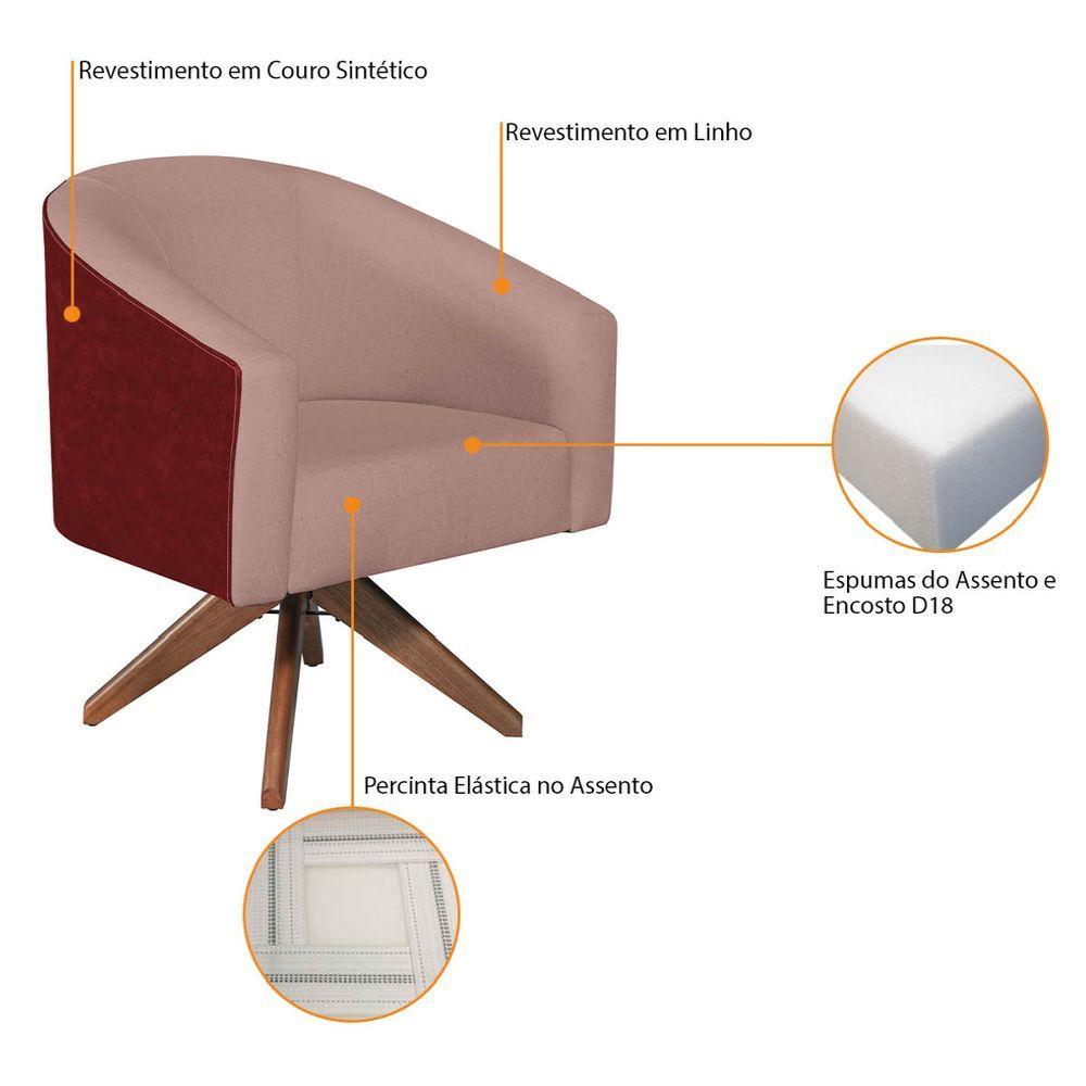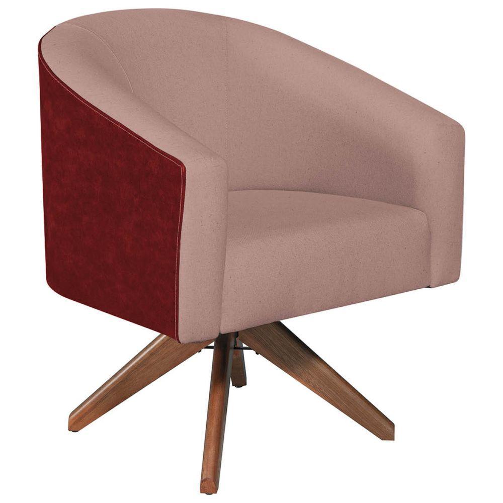 Poltrona Luiza Base Giratória De Madeira Factor Vermelho E Linho - Adj Decor Cor Rosê