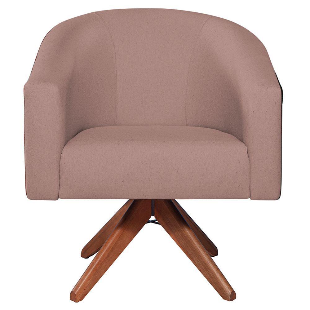 Poltrona Luiza Base Giratória De Madeira Factor Preto E Linho - Adj Decor Cor Rosê