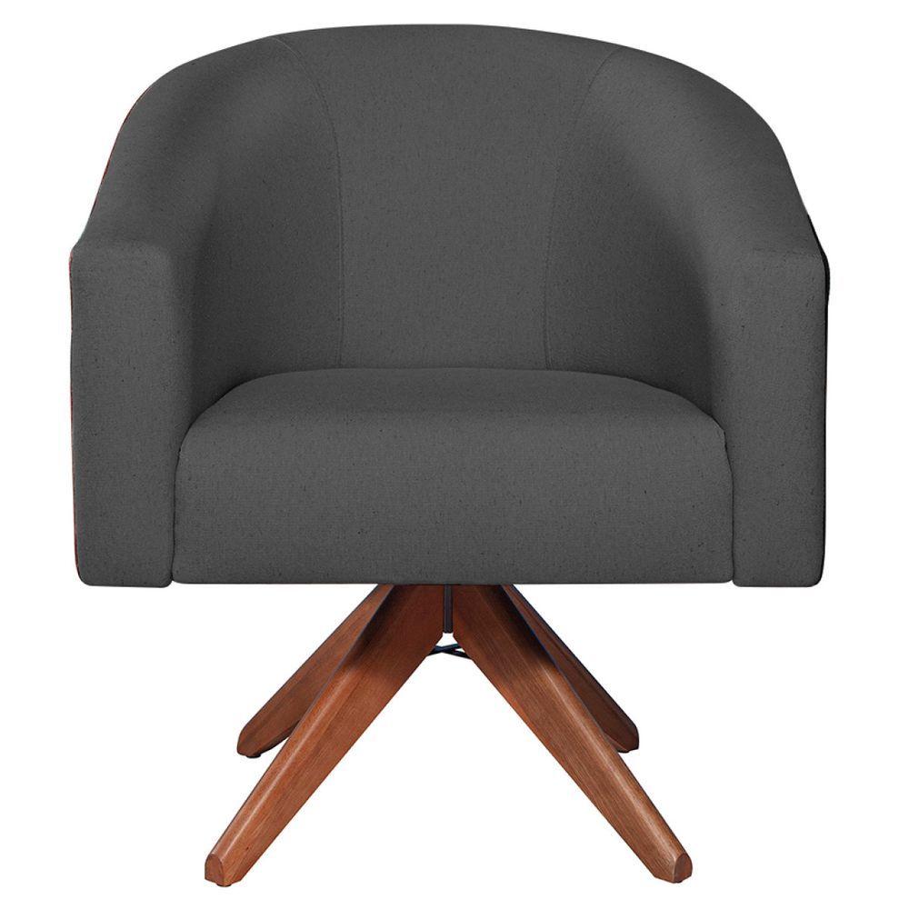 Poltrona Luiza Base Giratória De Madeira Factor Preto E Linho - Adj Decor Cor Cinzaescuro