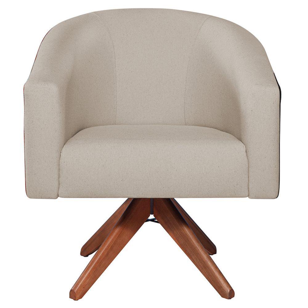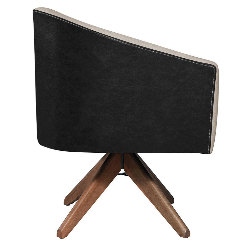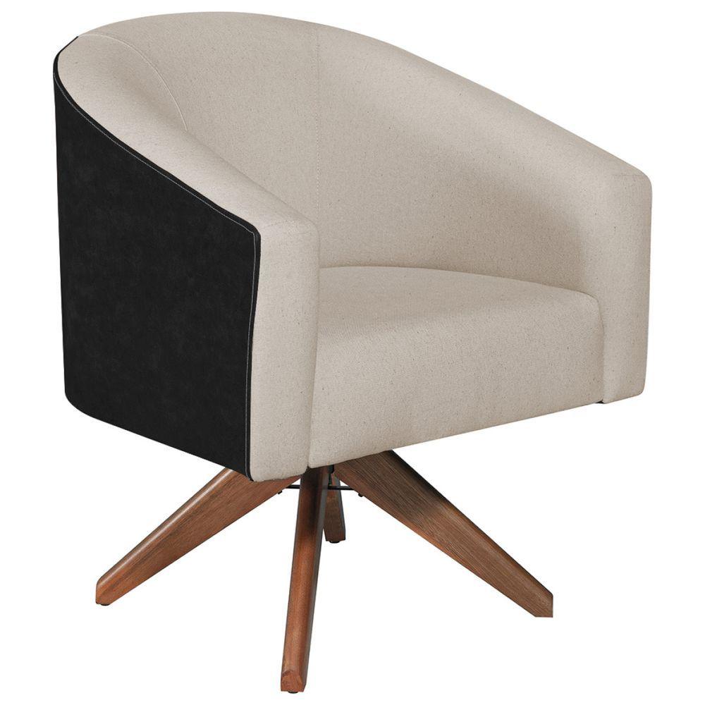 Poltrona Luiza Base Giratória De Madeira Factor Preto E Linho - Adj Decor Cor Bege