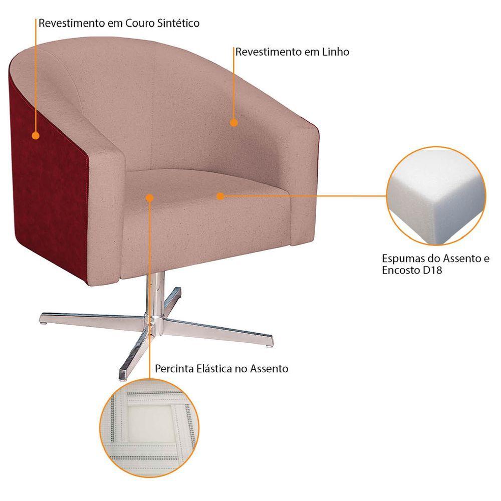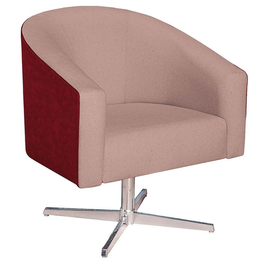 Poltrona Luiza Base Giratória De Metal Factor Vermelho E Linho - Adj Decor Cor Rosê