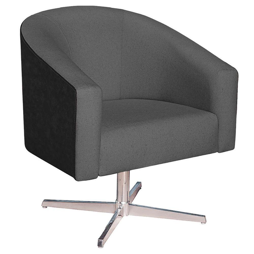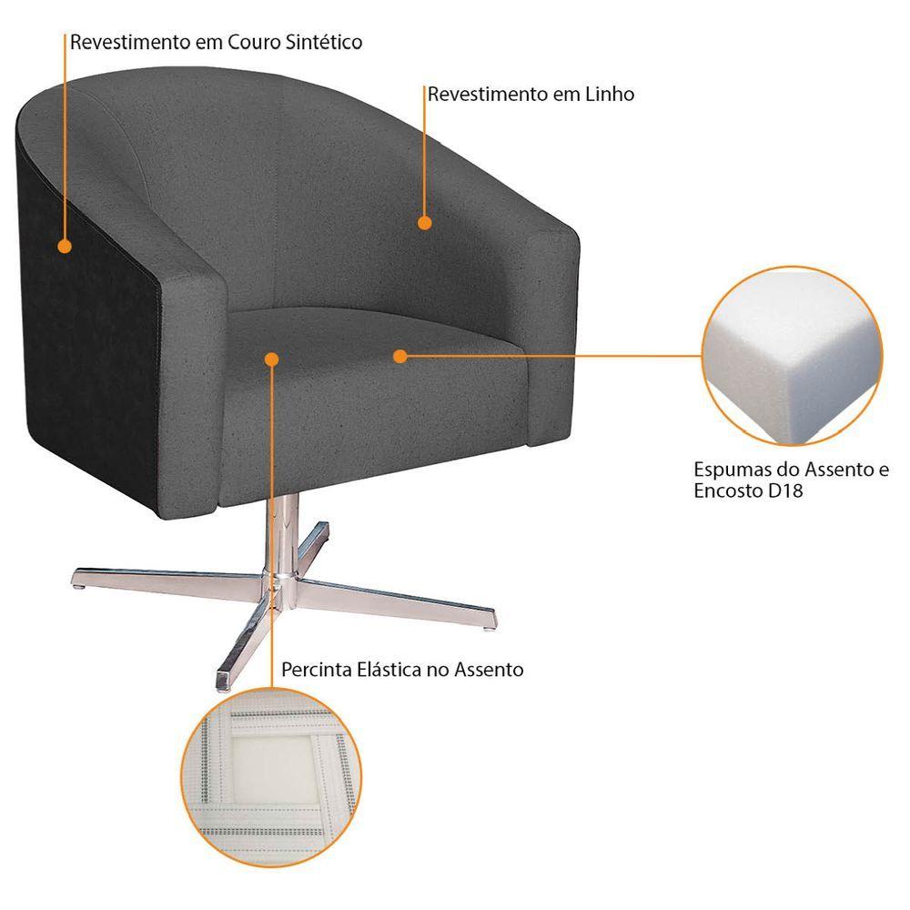 Poltrona Luiza Base Giratória De Metal Factor Preto E Linho - Adj Decor Cor Cinzaescuro
