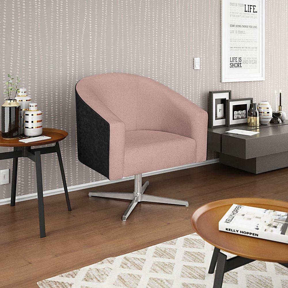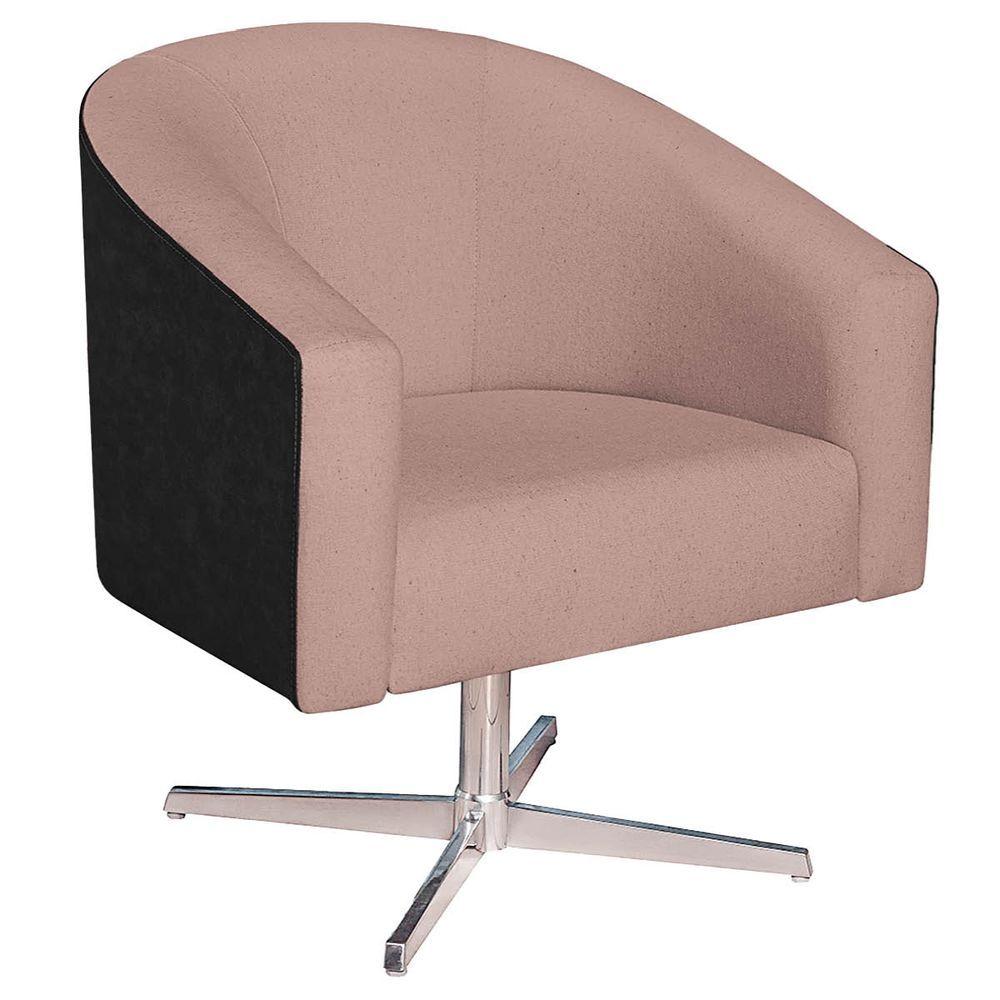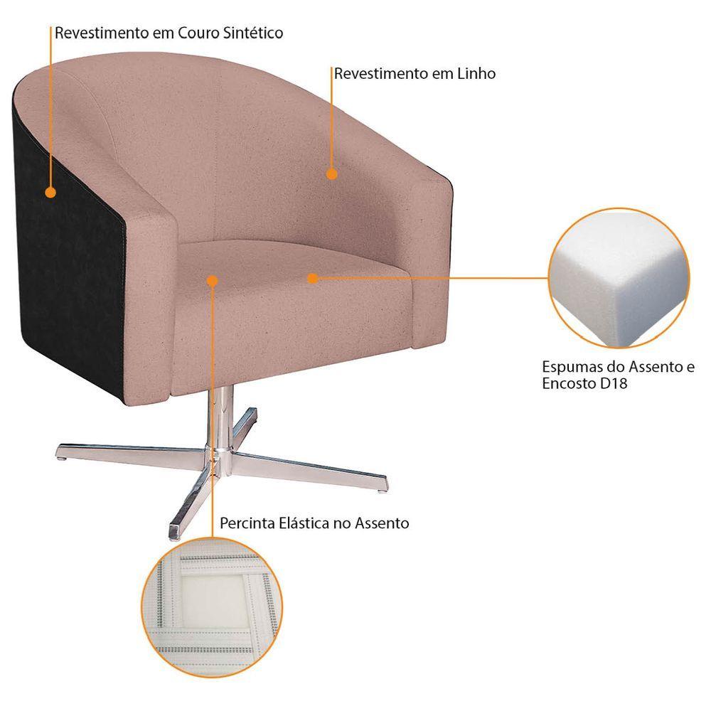 Poltrona Luiza Base Giratória De Metal Factor Preto E Linho - Adj Decor Cor Rosê