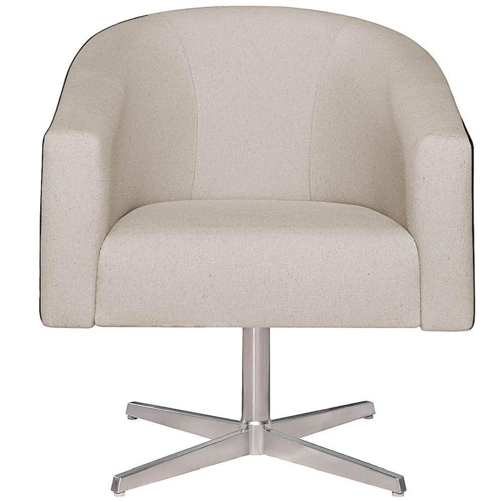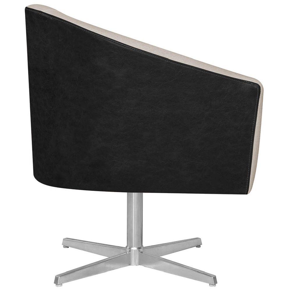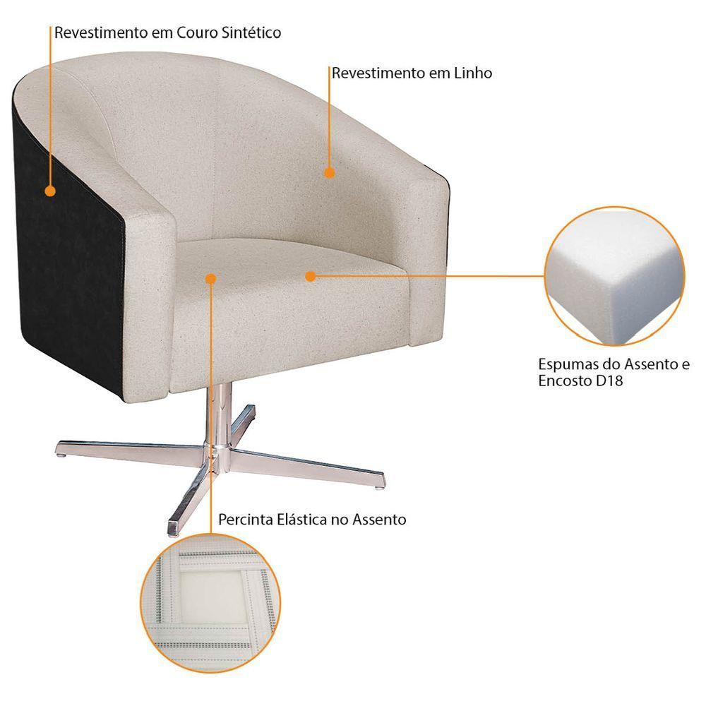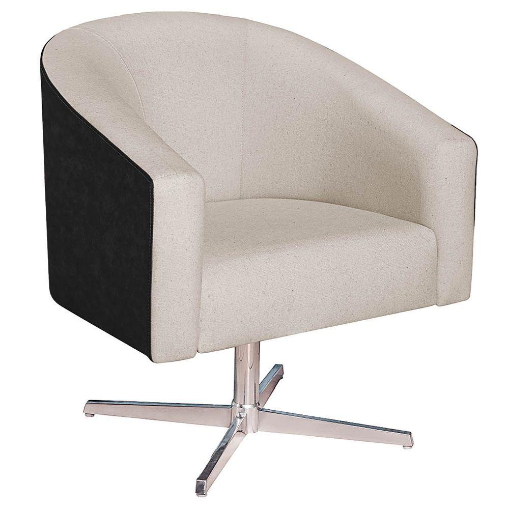 Poltrona Luiza Base Giratória De Metal Factor Preto E Linho - Adj Decor Cor Bege