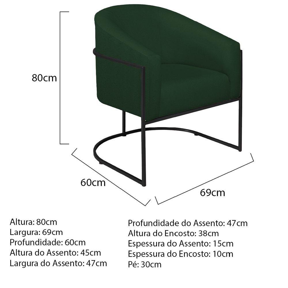 Poltrona Decorativa Sala De Estar Recepção Luiza Base De Ferro Preto Suede - Adj Decor Cor VerdeGostaria de um móvel que trouxesse mais elegância e sofisticação para o seu lar? A Poltrona Luiza Base de Ferro Preto Suede é sua melhor opção! Com característica moderna e com acabamento de qualidade, este produto atenderá suas expectativas! Não perca essa oportunidade e adquira já a sua!Especificações Técnicas da Poltrona Luiza Base de Ferro Preto Suede:- Altura: 80 cm;- Largura: 69 cm;- Profundidade: 60 cm;- Altura do Assento: 45 cm;- Largura do Assento: 47 cm;- Profundidade do Assento: 47 cm;- Altura do Encosto: 38 cm;- Espessura do Assento: 15 cm;- Espessura do Encosto: 10 cm;- Altura dos Pés: 30 cm;- Peso Suportado: 120 kg.Diferenciais da Poltrona Luiza Base de Ferro Preto Suede:- Material da Estrutura: fabricado com Madeira Pinus e Eucalipto Reflorestada, e alguns detalhes em MDF;- Detalhes dos Pés: acompanha base de ferro, de alta resistência;Recomendações de limpeza:-Limpar com flanela limpa e seca. Não molhar o móvel e não expor em lugar úmido ou próximo de fontes de calor. Não usar produtos abrasivos.Observações Importantes:- As imagens ambientadas são meramente ilustrativas e podem apresentar itens que não compõe o produto;- Objetos decorativos que aparecem na foto não acompanham o produto;- As cores do produto podem variar de acordo com o monitor, a iluminação do ambiente, ou sua percepção visual;- A Poltrona Luiza Base de Ferro Preto Suede chegará montada para você;- Confira as dimensões antes da compra e certifique-se de que o produto passará por elevadores, portas e corredores;- Ao receber seus produtos, verifique no ato do qualquer dano na embalagem;- Produto para uso residencial em ambiente interno, não devendo ficar exposto diretamente ao sol, calor e umidades excessivas.