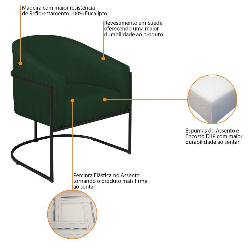 Poltrona Decorativa Luiza Base De Ferro Preto Suede Verde