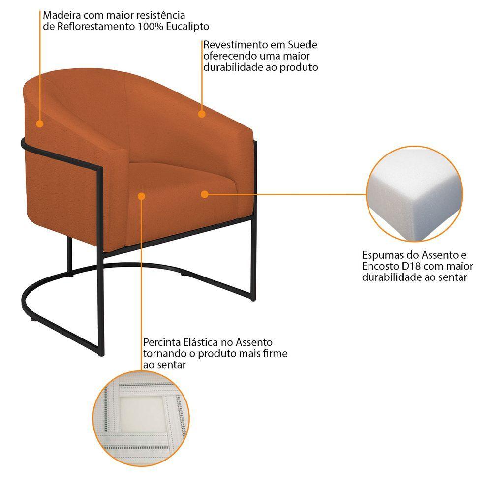 Poltrona Decorativa Luiza Base De Ferro Preto Suede Terracota