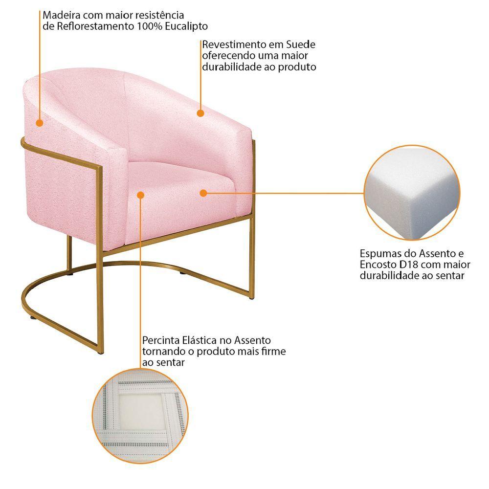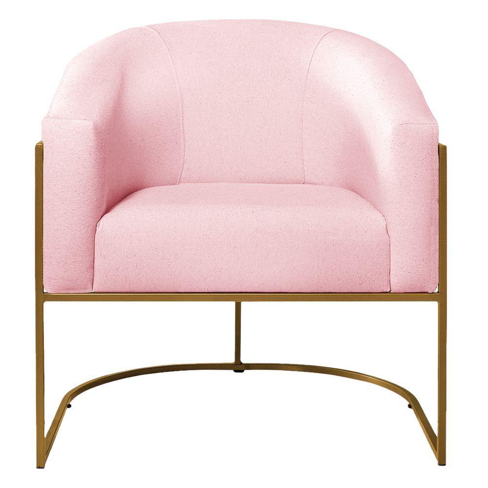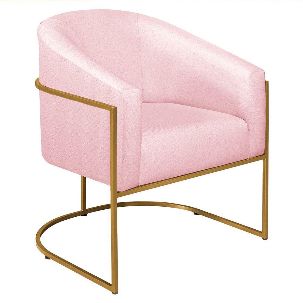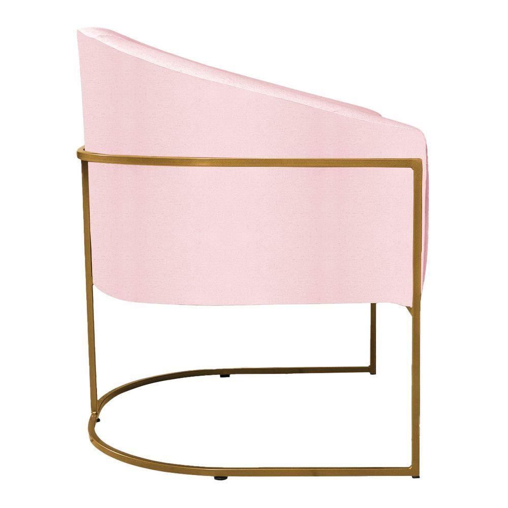 Poltrona Decorativa Luiza Base De Ferro Dourado Suede Rosa Bebê