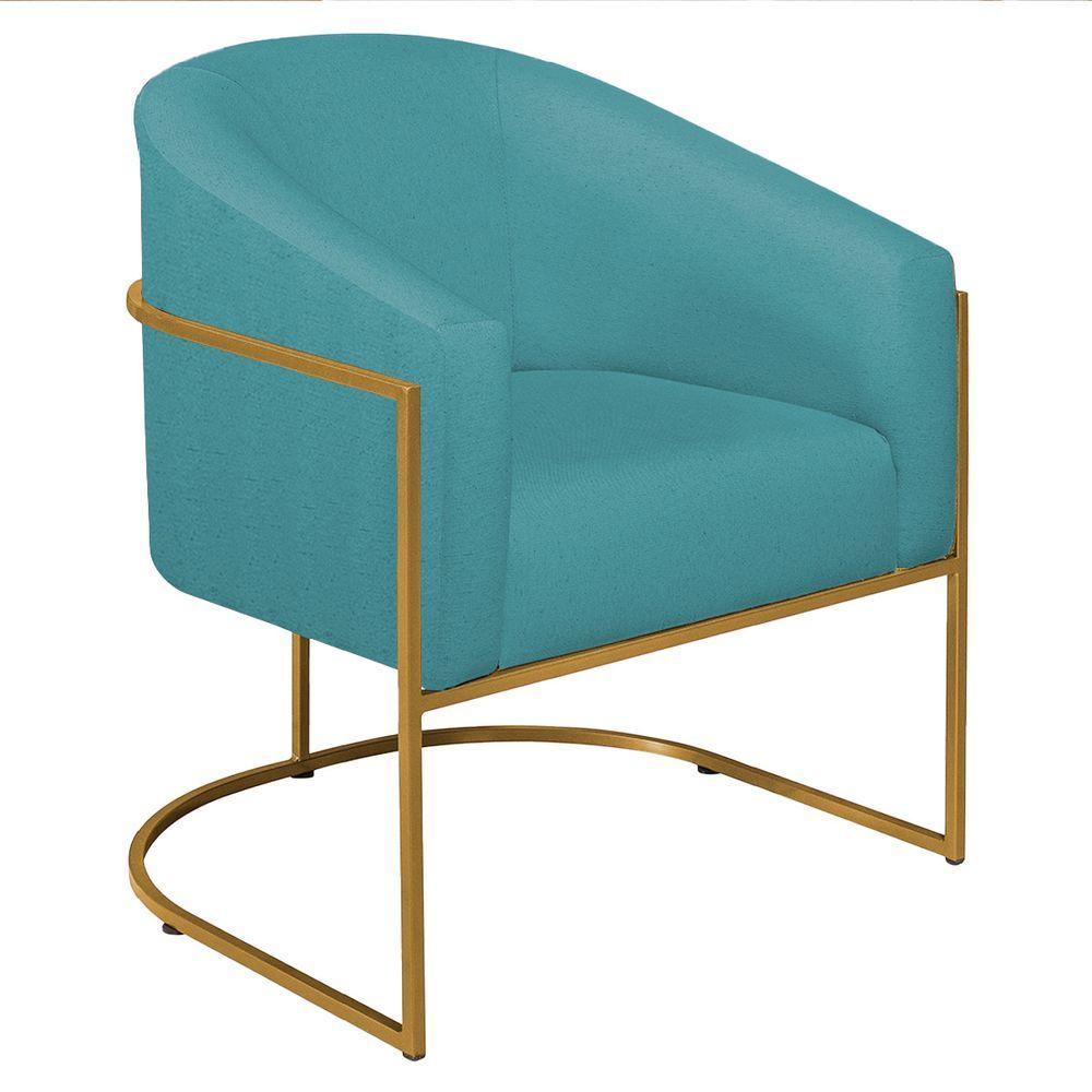 Poltrona Decorativa Luiza Base De Ferro Dourado Suede Azul Turquesa