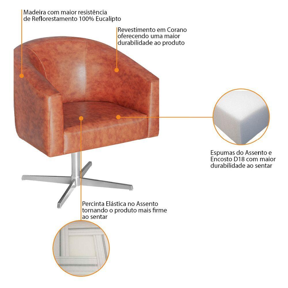 Poltrona Luiza Base Giratória De Metal Sintetico Nozes - Adj Decor Cor Nozes