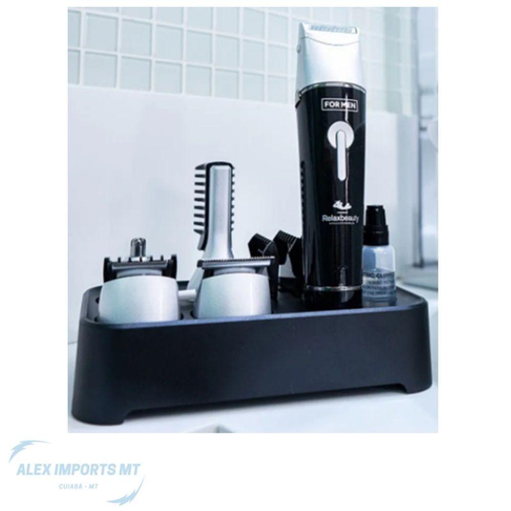Barbeador Elétrico á Prova D água Relax Com Pentes Kit completo para cortar o cabelo e aparar pelos do corpo sem sair de casa. Acomanha uma base para você organizar o seu kit. Versátil, possui 10 acessórios para cortar e aparar os pelos em diversos tamanhos.Funciona sem fio e possui base carregadora, é colocar o seu barbeador na base, e pronto! Ele carrega automaticamente.O Relax Multi Groom é a prova d'água. Então, você pode usá-lo durante o banho* e sempre que precisar higienizar com água corrente.Acessórios inclusos:- Micro barbeador: ideal para pelos menores, rentes a pele- Aparador de alto desempenho- Aparador para nariz e ouvidos- Pentes com diversos tamanhos- Base porta acessórios e carregadora que acondiciona todos os acessórios, garantindo praticidade e organização.ALIMENTAÇÃO: USB