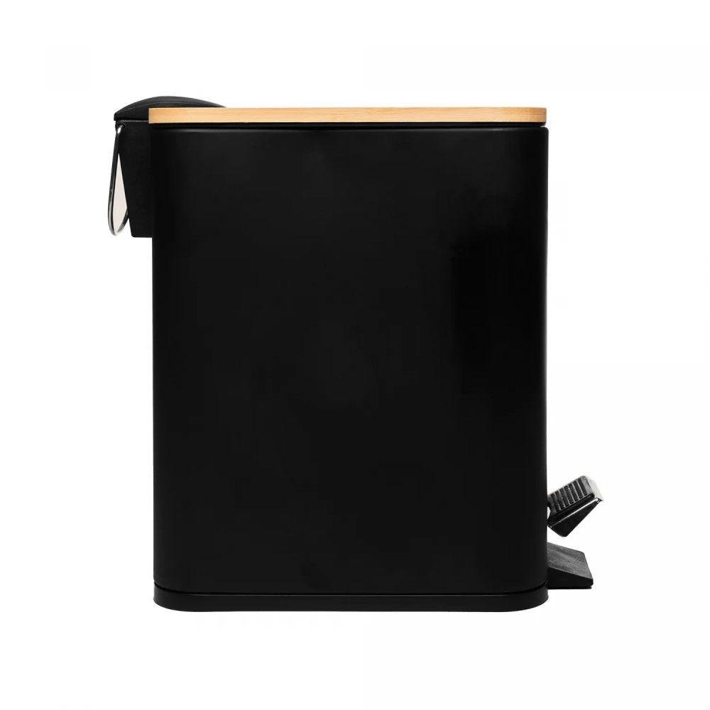 Lixeira 5l Retangular De Metal Com Pedal E Tampa Em Bambu Preta Lyor