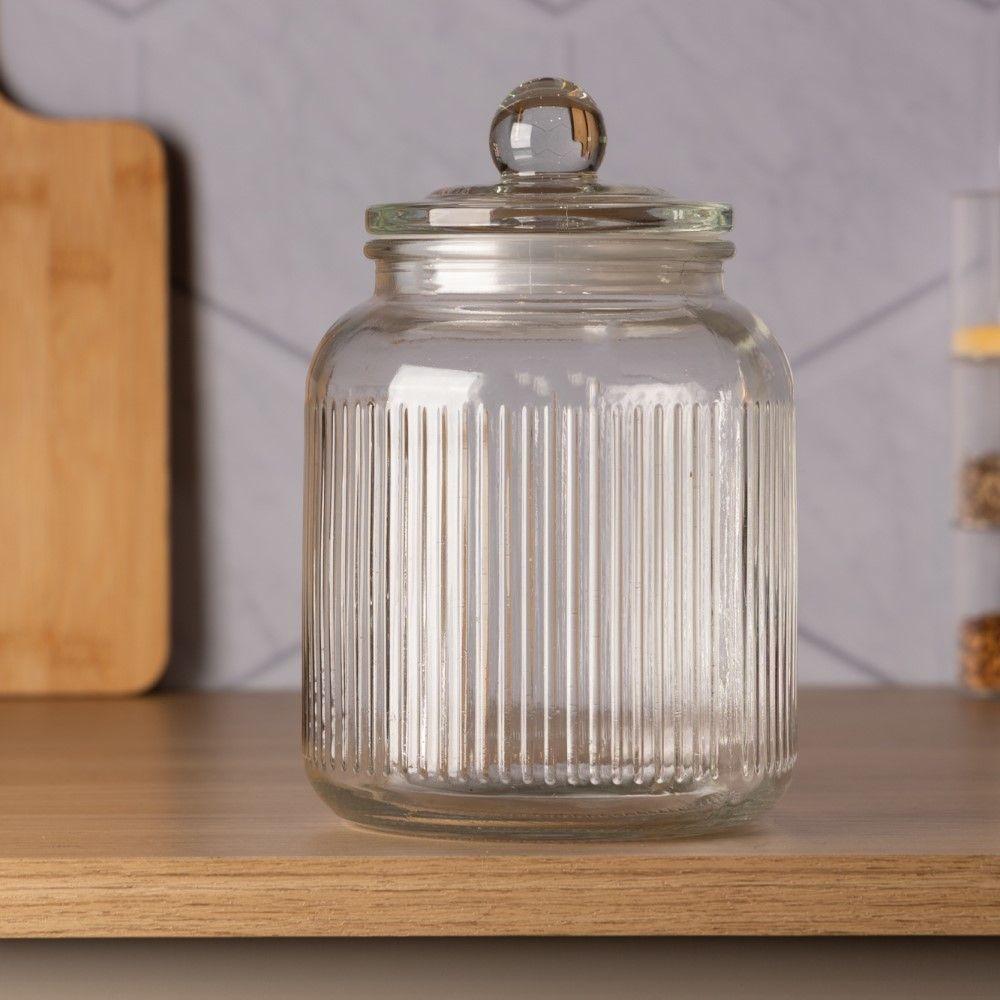 Conjunto De 2 Potes Herméticos De Vidro Canelado 1,3l Essência Lyor