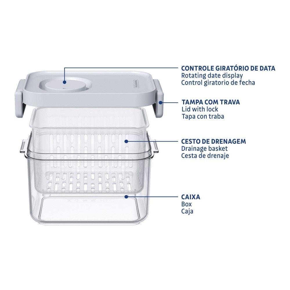 Pote Organizador De Geladeira 0,9l Organizzare Com Controle De Umidade Tramontina 61820-090