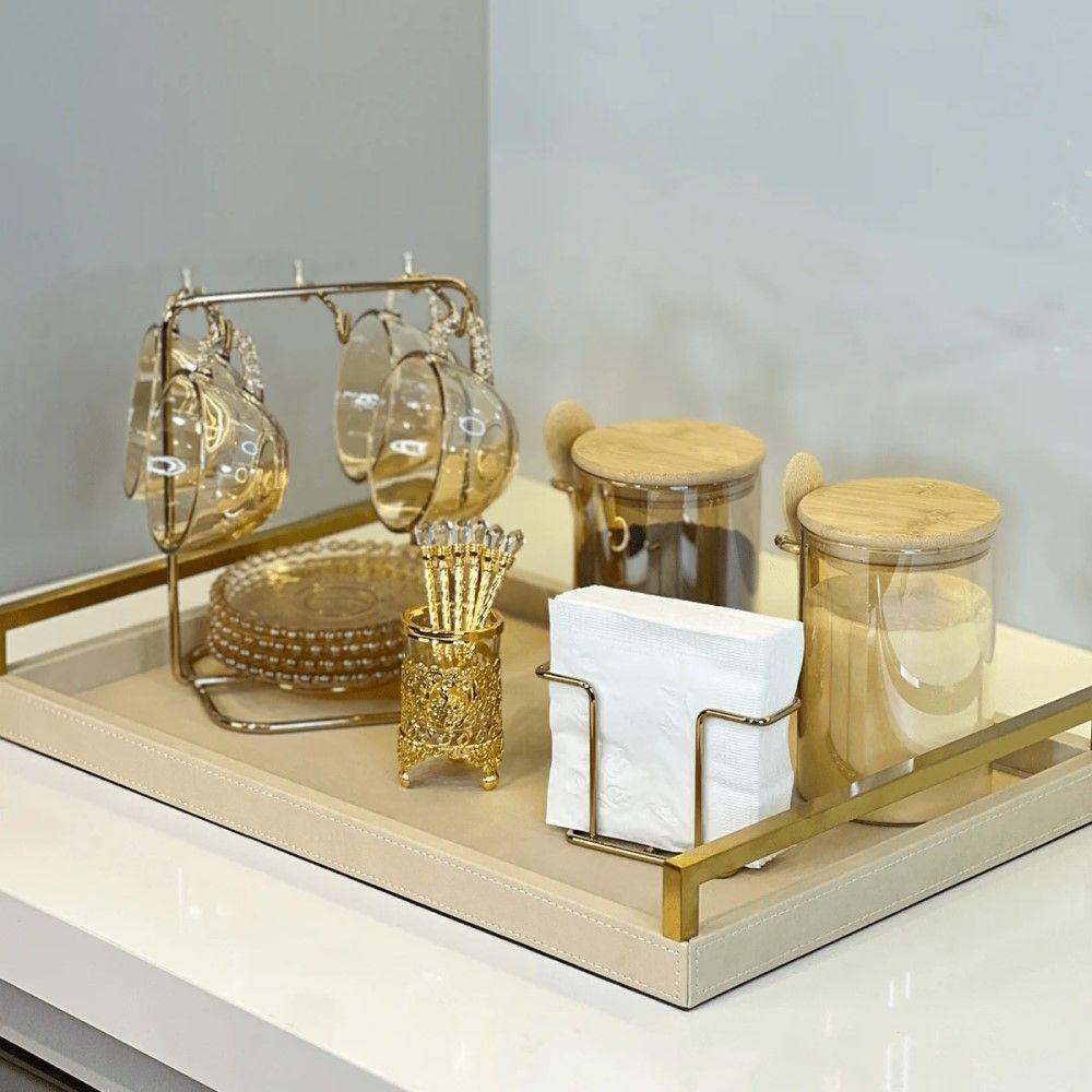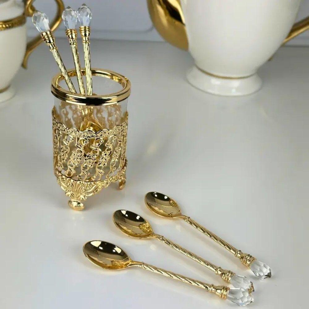 Conjunto 6 Colheres De Café Com Suporte Zamac Crystal Dourado Wolff