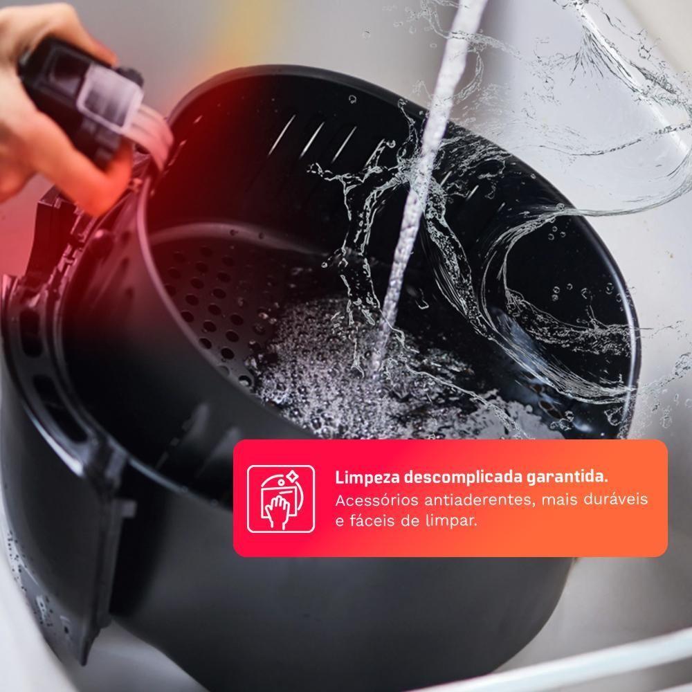 Fritadeira Sem Óleo Airfryer Oven HQ 5 Em 1 12 Litros Digital Com Visor Preta HQ-AFO12LDVG 220VFritadeira Sem Óleo AirFryer Oven HQ 5 em 1 12 litros Digital Com visor Preto HQ-AFO12LDVGAlta capacidade, mais recursos e praticidade total no seu dia a dia.Muito mais que uma air fryer: é um forno multifuncional que transforma sua cozinhaA Air Fryer Oven HQ 12L é a escolha perfeita para quem quer sair do básico e ganhar autonomia, espaço e versatilidade na hora de cozinhar. Com painel touch sensível ao toque, 10 modos automáticos, controle total de tempo e temperatura, luz interna acessórios profissionais, ela traz tudo o que você precisa para preparar refeições completas, saudáveis e econômicas todos os dias sem óleo e com muito mais sabor.Capacidade e recursos que fazem a diferença - 12 Litros de capacidade interna: prepare mais alimentos de uma só vez — de batatas fritas a frango inteiro. - Potência de 1700W com controle de temperatura ajustável: aquece rápido e mantém o calor estável de 65°C a 200°C. - Timer ajustável de 1 a 60 minutos, com desligamento automático por segurança. - 10 funções automáticas no painel digital: frango inteiro, batata frita, peixe, bife, camarão, aquecer, desidratar, assar, fermentação/descongelamento e mais.Funções especiais para receitas mais completas - Função desidratar (80°C/4h): ideal para frutas secas, chips saudáveis e snacks naturais. - Função fermentação/descongelamento (40°C/1h): perfeita para massas, iogurtes e descongelar carnes com suavidade. - Luz interna: mais controle no preparo, com visor transparente que dispensa abrir a porta.Fácil de limpar, fácil de usar - Acompanha acessórios em aço inox: grelha, bandeja coletora de gordura e pinças. - Todos os itens removíveis são laváveis na lava-louças, facilitando sua rotina. - Corpo em PP resistente ao calor, com acabamento moderno e durável.Especificações TécnicasMarca: HQCor: PretaModelo: HQ-AFO12LDVL1 (127V) / HQ-AFO12LDVL2 (220V)Voltagem Disponível em: 127V e 220VPotência: 1700WMaterial: Corpo em PP resistente a altas temperaturasPainel: Digital com teclas touch e visor de LEDCapacidade: 12 litros úteisTemperatura: 65°C a 200°CTimer: 01 a 60 minutosFunções Especiais: Desidratar, Fermentação, Aquecimento, Luz internaDimensões e PesoDimensões (AxLxP): 37,8x37,1x31,65 cmPeso Liquido: 6,0KgGarantia01 Ano (Sendo 3 meses de garantia legal e mais 9 meses de garantia para defeito de fabricação).