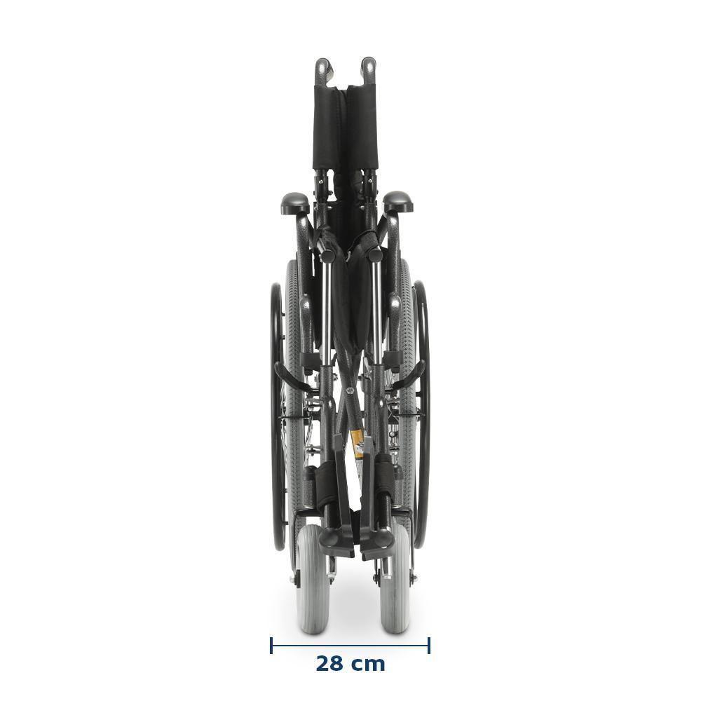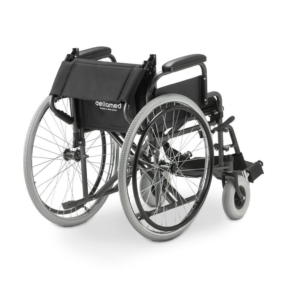 Cadeira De Rodas Dellamed Dobrável Em Aço Até 120 Kg Cinza E Preto D400-t40Cadeira de Rodas Dellamed Dobrável em Aço até 120 Kg Cinza e Preto D400-T40A Cadeira de Rodas D400 Dellamed foi projetada para atender às necessidades de de adultos e idosos com limitações de mobilidade. Seu chassi tubular de aço carbono, com pintura epóxi, garante durabilidade e estabilidade, suportando até 120kg, tornando-a uma opção confiável e resistente para uso diário.Além disso, a cadeira apresenta um design ergonômico, com um encosto rebatível que proporciona praticidade e conforto adicionais. Sua estrutura dobrável em duplo X facilita o transporte e o armazenamento, tornando-a uma escolha conveniente para diversas situações.Combinando funcionalidade e robustez, a Cadeira de Rodas Aço D400 Dellamed oferece uma solução completa para as necessidades de mobilidade dos usuários, garantindo uma experiência confortável e segura.- Suporta até 120 kg.- Vai com você para todo lugar, cabe em qualquer porta-malas, inclusive de carros mais compactos.- Facilidade de movimentação em locais de espaço reduzido.- Encosto rebatível e braços escamoteáveis.- Estrutura tubular em aço carbono, oferecendo maior robustez e durabilidade.- Quick-release: remoção das rodas de maneira prática e fácil.- Protetor de roupas e bolsão para objetos/prontuário.- Cadeira dobrável com sistema em duplo X.- Compacta, de fácil transporte.Especificações Técnicas:Marca: DellamedModelo: D400-T40Cor: Cinza e PretoBraços escamoteáveis: SimRodas maciças: SimCapacidade: Até 120KgEstofamento: Material impermeávelEncosto rebatível: Sim (não é reclinável)Apoios de braços: Rebatíveis e acolchoadosApoio de pés: Removíveis, rebatíveis lateralmente com regulagem de altura (swing-away)Almofada: Espuma de alta densidade e com capa de nylonCinto abdominal para segurança: SimRaios: Aço inox reforçado e aros em aço carbonoPintura: Epóxi de alta resistênciaTiras de panturrilha: SimFreios bilaterais reguláveis e ergonômicos: SimDimensões e Peso do Produto:Altura: 96,5 cmLargura: 59,5 cmProfundidade: 105 cmPeso: 20 kgGarantia:01 Ano na Estrutura (Sendo 3 meses de garantia legal e mais 9 meses de garantia para defeito de fabricação).3 meses de garantia legal nos demais componentes.