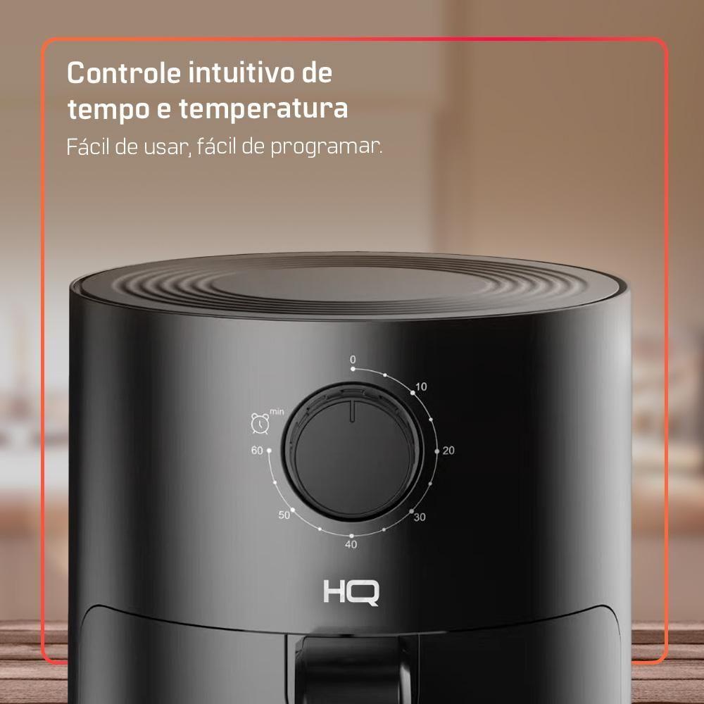 Fritadeira Elétrica Airfryer HQ 2,8 Litros Preta HQ-AF2.8LMG 220VFritadeira Elétrica AirFryer HQ 2,8 litros Preta HQ-AF2.8LMGPraticidade, saúde e eficiência para o dia a dia.A Air Fryer HQ 2,8L combina design compacto, operação intuitiva e baixo consumo de energia, sendo a escolha ideal para consumidores que valorizam refeições mais saudáveis e práticas.Compacta por fora e eficiente por dentro, oferece um excelente custo-benefício para pequenas famílias e uso diário.- Capacidade de 2,8 LitrosPerfeita para porções de 1 a 3 pessoas.- Potência de 800WPromove preparo eficiente com menor consumo de energia.- Controle mecânicoBotões giratórios para ajuste de tempo (0 a 60 minutos) e temperatura (até 200°C).- Preparo saudávelCozinha sem óleo, preservando o sabor dos alimentos.- Cesto e recipiente com revestimento antiaderenteFácil remoção dos alimentos e limpeza simplificada.- Design compacto e funcionalIdeal para cozinhas menores e uso diário.- SegurançaEstrutura em plástico resistente ao calor e base estável.HQ Para todos os momentosCom praticidade, eficiência e excelente percepção de valor, a Air Fryer HQ 2,8L é uma solução versátil que atende às necessidades do consumidor moderno, trazendo saúde, economia e funcionalidade para o dia a dia.Especificações Técnicas:Marca:HQModelo: HQ-AF2.8LMG1 (127V) / HQ-AF2.8LMG2 (220V)Voltagem: Não é BivoltCapacidade: 2,8 LitrosPotência: 800WControle: Mecânico (botões giratórios)Timer: 0 a 60 minutosTemperatura:Ajustável até 200°CMaterial do corpo: Plástico resistente ao calor com revestimento interno antiaderenteCabo de alimentação: 1,1mCor: PretaDimensões do produtoAltura: 24,1 cmLargura: 20,1 cmProfundidade: 28,5 cmPeso do Produto: 3,9 kgGarantia: 01 Ano (Sendo 3 meses de garantia legal e mais 9 meses de garantia para defeito de fabricação).