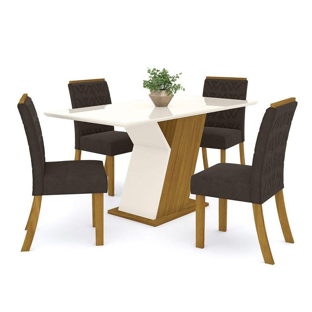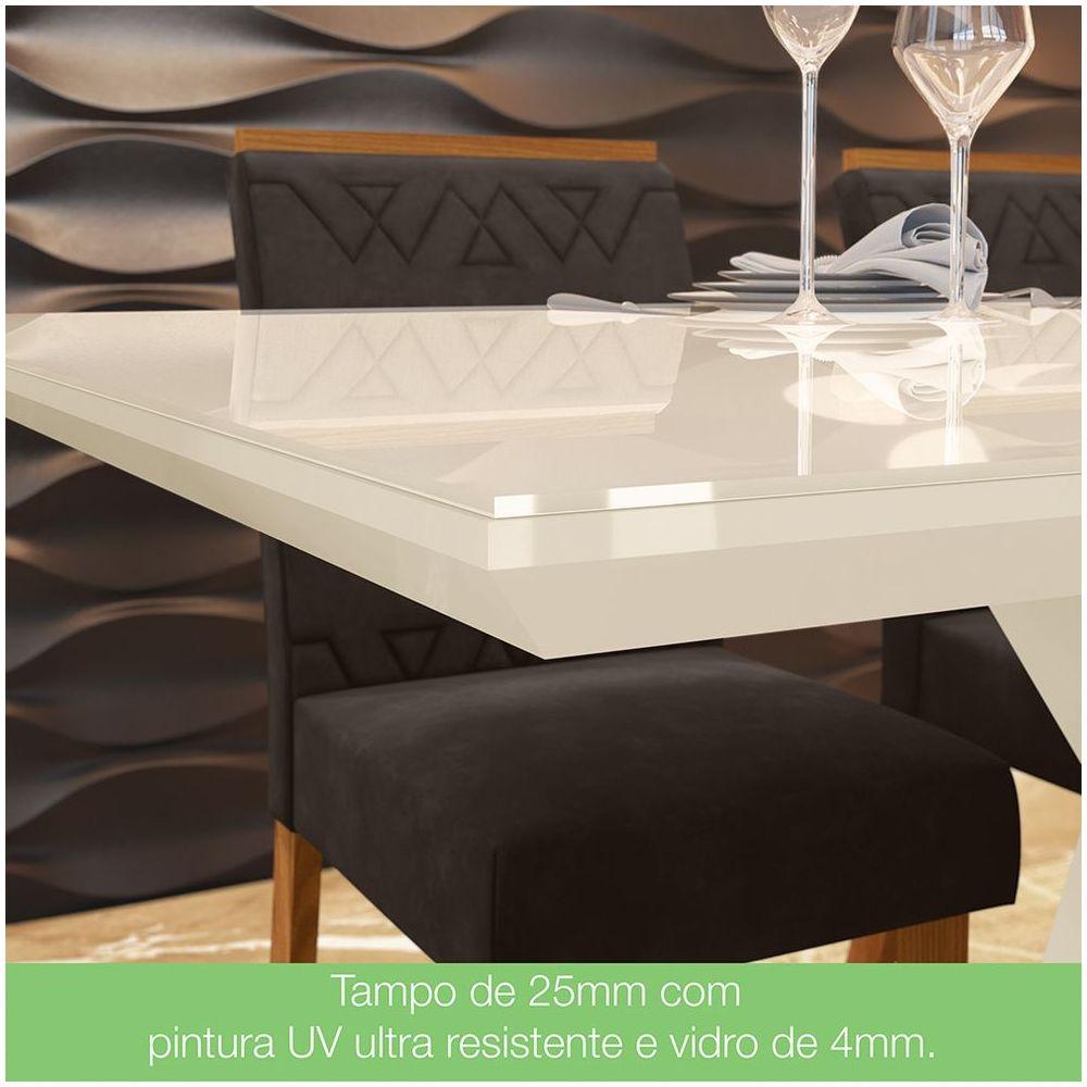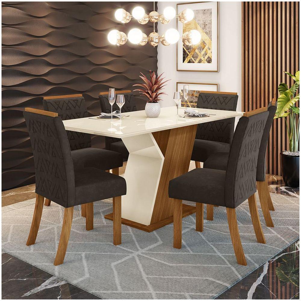 Conjunto Sala De Jantar Mesa 160cm Vidro 6 Cadeiras Zuri Casa 812 Nature Off White E Marrom