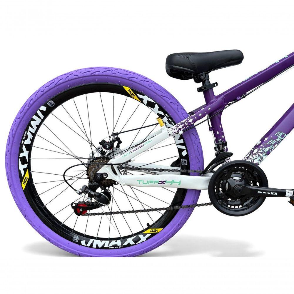 Bicicleta Aro 26 Vikingx Tuff X44 Freeride Dh 21v Aro Vmaxx Freio A Disco Garfo Suspensão Pneu Flame Roxo-Branco