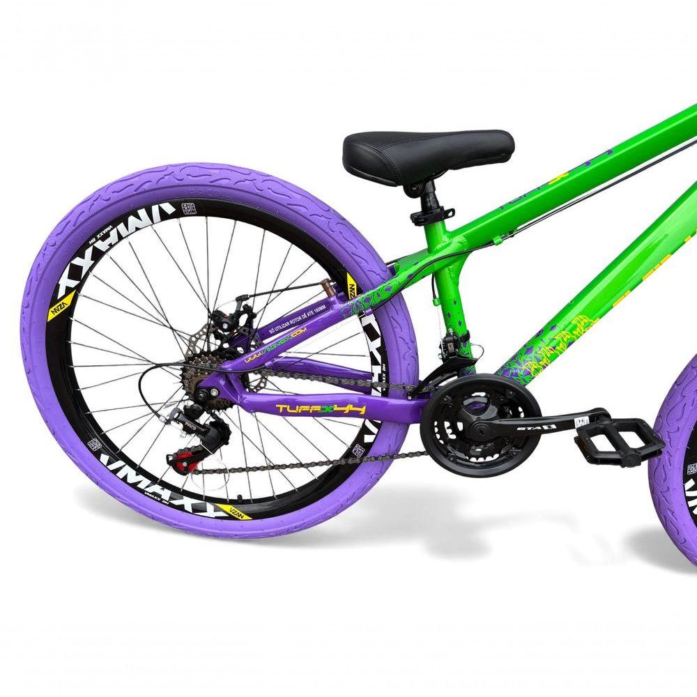 Bicicleta Aro 26 Vikingx X44 Tuff Freeride Dh 21v Aro Vmaxx Freio A Disco Garfo Suspensão Pneu Flame Verde-Roxo