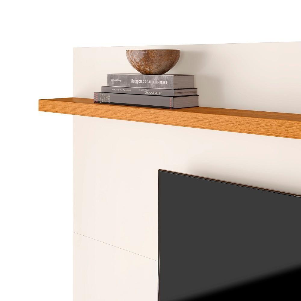 Painel Ripado Tv 55 Polegadas Com Nicho E Prateleira Ipanema - Off White E Cedro