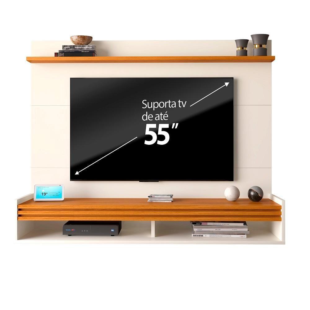 Painel Ripado 55 Polegadas Com Nicho E Prateleira Ipanema - Off White E CedroO Painel Ipanema da ViaNossa é a solução perfeita para quem busca praticidade e um design moderno. Compacto e versátil, ele se adapta facilmente a qualquer ambiente, suportando TVs de até 55 polegadas. A estrutura, feita em MDP 15mm com acabamento em pintura UV, se destaca pelo charmoso nicho ripado e pela prateleira superior, espaços ideais para organizar seus aparelhos eletrônicos e objetos de decoração.Dimensões:Largura: 136 cmAltura: 107 cmProfundidade: 29 cmPeso 27,5 kgEspecificações Técnicas:Produzido em MDP e MDFAcabamento em Alto brilho com pintura UV;2 Prateleiras;2 Nichos;Não possui Gavetas;Não possui Portas;Montagem necessária do produto;Observações Importantes:Ao receber seu pedido Verifique a embalagem. Caso note qualquer ou sinal de violação, por favor, recuse o e conosco imediatamente.Responsabilidade da : Nossas são realizadas no térreo. Não nos responsabilizamos pelo do produto por escadas ou elevadores.Montagem: A montagem do produto é de responsabilidade do cliente. Para garantir a qualidade e a sua , recomendamos fortemente a contratação de um montador . Não cobrimos danos causados por erros de montagem.Faltou alguma peça? Se notar a falta de qualquer peça ou acessório, conosco. Enviaremos o item necessário sem nenhum custo adicional para você. Ambiente Principal: Sala de Estar | Largura: 136 cm | Complexidade da Montagem: Média | Pessoas necessárias para montagem: 1 | Altura: 107 cm | Profundidade: 29 cm | Suporta até: 30 kg | Possui iluminação Não | Medida máxima para : 55 polegadas | Origem do produto | Necessita montagem: Sim | Possui portas: Não Possui Portas | Possui gavetas: Não Possui Gavetas | Quantidade de caixas de embalagem: 1 | Possui prateleiras?: Possui 2 prateleira | Possui nichos?: Possui 2 nichos | Possui espelhos?: Não Possui Espelhos | Possui vidro?: Não Possui Vidro | Modelo Ipanema; Estante; Painel; Sala de Estar; Quarto; Royal; | Marca: ViaNossa; ViaNossa Móveis; EDN Móveis; Ipanema; Royal | Material: MDP e MDF | Formato do móvel: Painel | Acabamento Pintura UV | Tempo de garantia: 3 meses | Tipo de garantia: Fabricante | Inclui manual de montagem: Sim Off White e Cedro