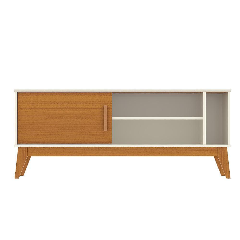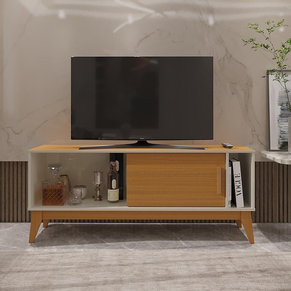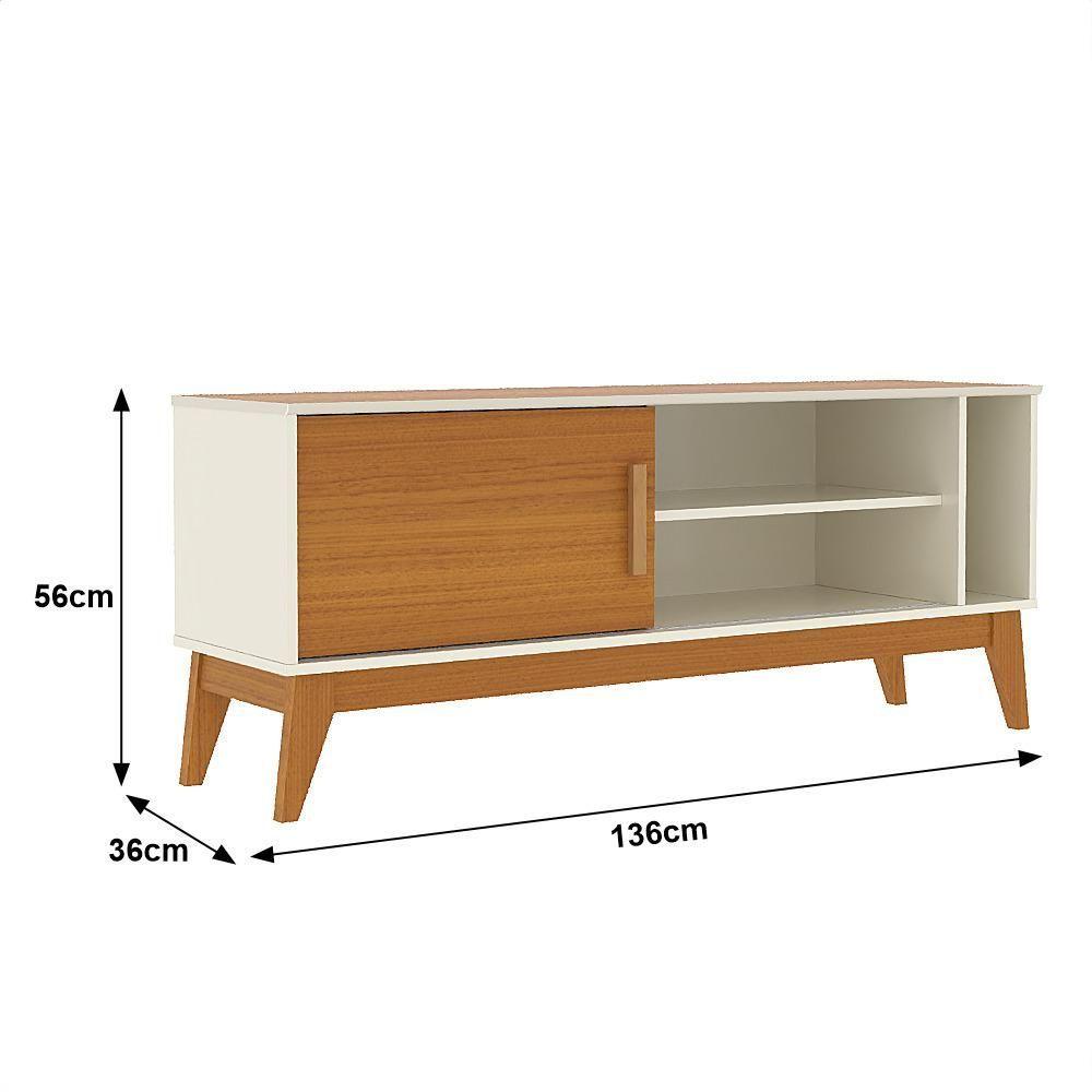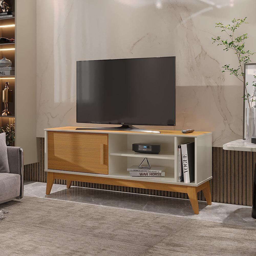 Rack Tv 55 Polegadas 1 Porta E Puxador De Madeira Arizona - Off White E Cedro
