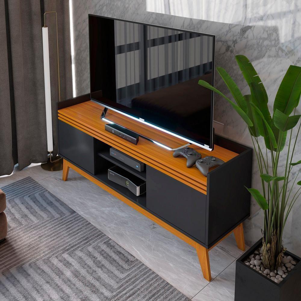 Rack Tv Ripado 50 Polegadas Com 2 Portas Monaco - Preto E Cedro