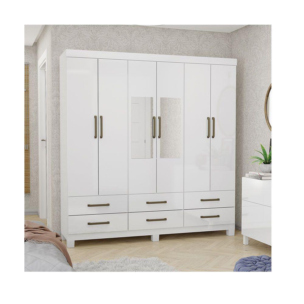 Guarda-roupa D22 6 Portas 6 Gavetas Com Espelho e Pés Branco