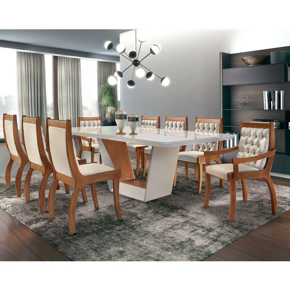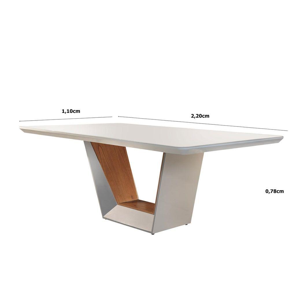 Mesa Rubi 220cm Madeira E Vidro Mobillare Off White