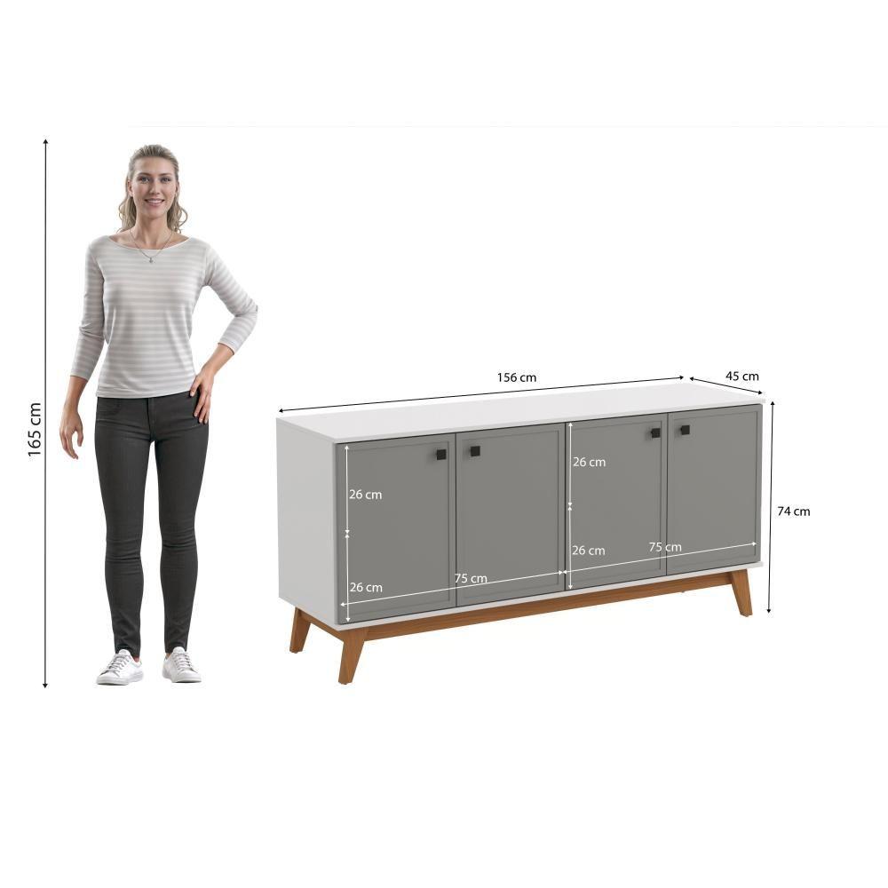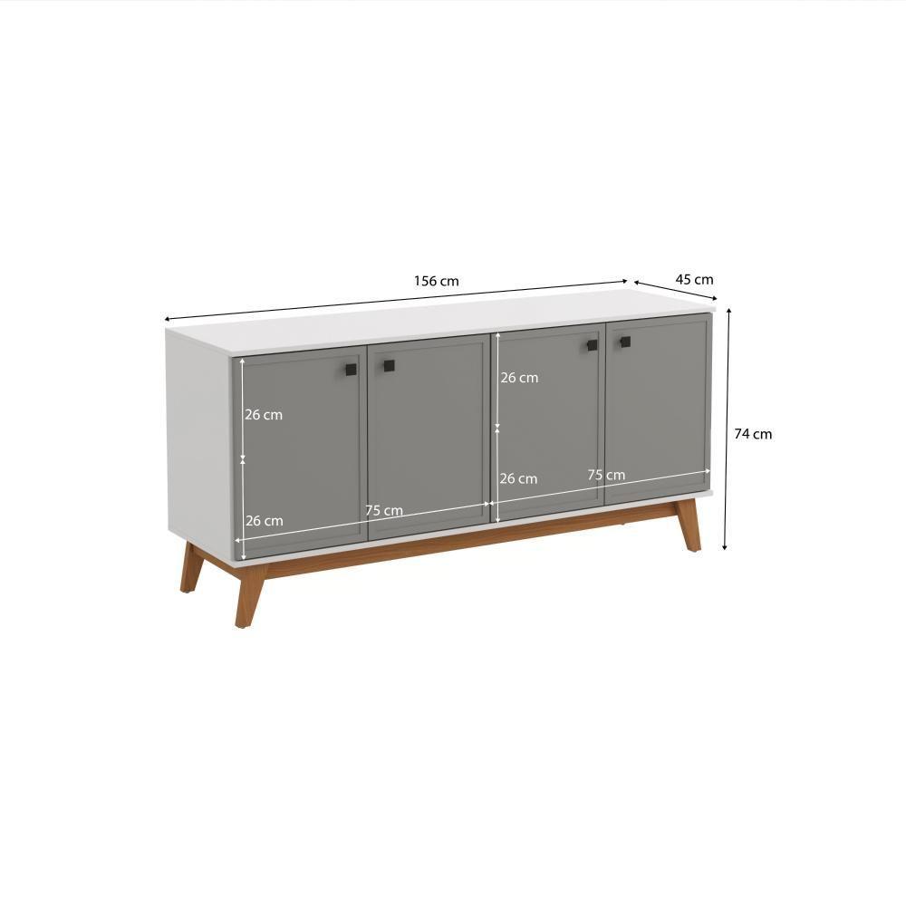 Aparador Kappesberg 4 Portas Shaker Branco/Cinza Sagrado 180cm