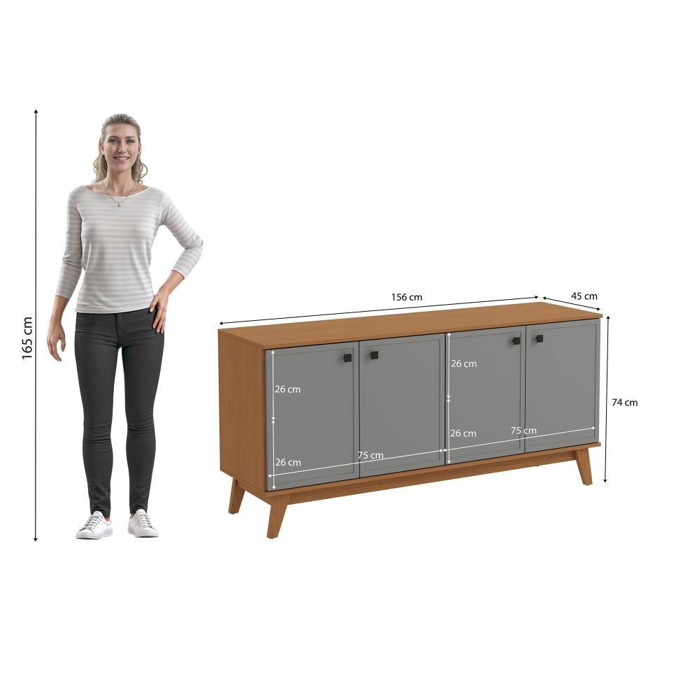 Aparador Kappesberg 4 Portas Shaker Canela/cinza Sagrado 180cm