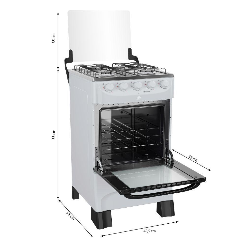 Fogao 4bcs Mesa Inox Mfi4bb Mueller Branco BivoltPraticidade e modernidade para sua cozinha.O Fogao Mueller 4 Bocas Mesa Inox MFI4BB combina design elegante com a resistencia do acabamento em inox. Sua mesa lisa e facil de limpar e garante muito mais durabilidade no dia a dia. Com 4 queimadores potentes, voce prepara suas receitas com rapidez e eficiencia, enquanto os manipulos ergonomicos oferecem mais conforto e precisao no acendimento. Compacto, funcional e robusto, e a escolha ideal para quem busca qualidade, praticidade e estilo em um unico fogao. Modelo: MFI4BB Tampa: Vidro temperado Botoes: Removiveis Mesa: Inox Forno: Com valvula de seguranca Protecao termica: Duplo vidro no forno Queimador: Aco esmaltado Dimensoes Do Produto: Altura: 87 cm Largura: 48,5 cm Profundidade: 55 cm Peso: 17,7 Kg Garantia Do Produto: 12 meses