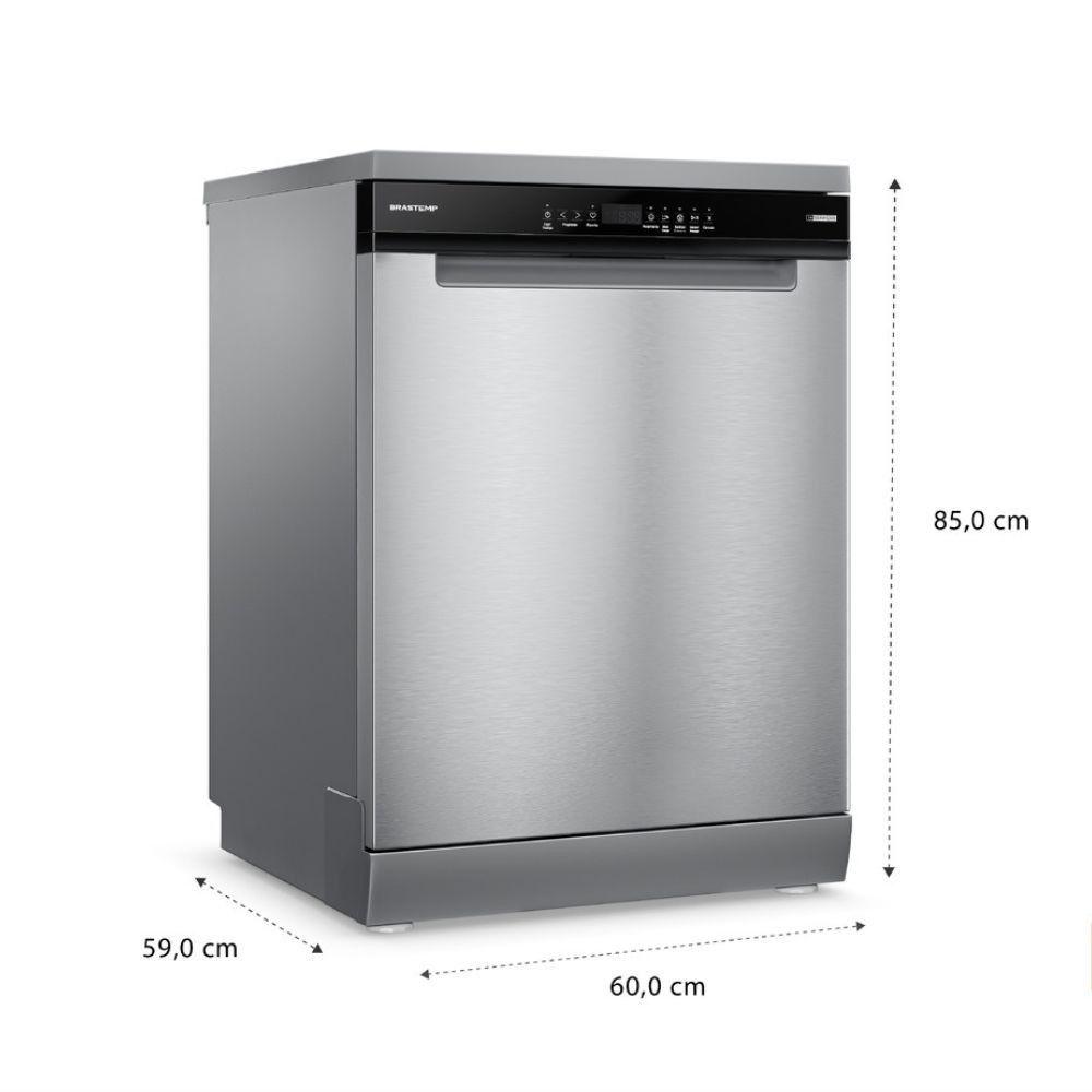 Lava Louças Brastemp 14 Serviços Com Smart Sensor BLF60AR Inox - 110VA nova linha de lava-loucas 14 servicos Brastemp e a escolha ideal para quem busca a combinacao perfeita entre eficiencia e praticidade no dia a dia. Ela garante excelencia em sua performance de lavagem, oferecendo resultados impecaveis em cada ciclo. Equipado com a inovadora funcao Smart Sensor, esse modelo elimina a necessidade de decidir manualmente qual ciclo de lavagem utilizar. O Smart Sensor e capaz de detectar automaticamente o nivel de sujeira das loucas e selecionar o ciclo mais adequado, garantindo uma limpeza mais eficaz e eficiente, sem que voce precise se preocupar com os detalhes.Alem disso, a lava-loucas Brastemp oferece um amplo espaco interno, o que permite acomodar uma variedade de loucas de diferentes tamanhos, desde pratos grandes ate copos e utensilios menores, otimizando a utilizacao do aparelho. Com essa capacidade, a lava-loucas ajuda a manter sua cozinha mais organizada e livre da bagunca que normalmente se acumula na pia, proporcionando um ambiente mais limpo e arrumado sem esforco adicional. Outro grande beneficio e que todas essas funcionalidades foram cuidadosamente desenvolvidas com o objetivo de promover economia, nao apenas no uso de agua e energia, mas tambem no seu tempo, tornando o processo de lavagem de loucas mais agil e eficiente.Diferenciais:- Funcao Smart Sensor- Funcao inteligente que detecta o nivel de sujeira nas loucas, calculando com precisao o tempo e quantidade de agua para garantir uma limpeza mais eficiente.- Mais louca na maquina e mais liberdade na pia- Com muito mais espaco para alocar diferentes tipos de louca, comporta 14 servicos e evita aquela bagunca que ficaria na pia.- Funcao Acquaspray- Libera jatos de agua que fazem uma pre-lavagem, removendo a sujeira. - Acumule as loucas na maquina ao longo do dia, podendo lava-las de uma so vez, sem se preocupar com odores ou a bagunca causada pelas loucas- Funcao SanitizarEspecificações TécnicasMODELO: BLF60ARVoltagem: 110VMarca: Brastemp Altura: 85 cmLargura: 60 cmProfundidade: 59 cmPeso: 50 KgGarantia: 12 meses